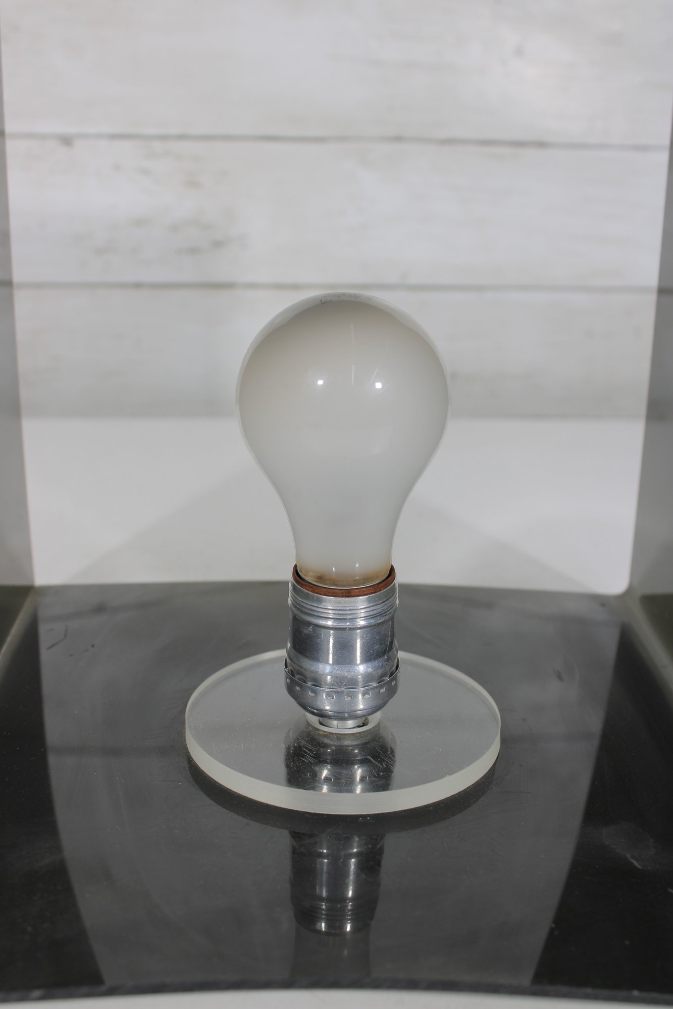 The smoke-colored acrylic softly diffuses the light while still showcasing the bulb inside, giving the lamp a clean and modern aesthetic. Its simple design makes it a great accent piece for modern, industrial, or mid-century inspired interiors.
