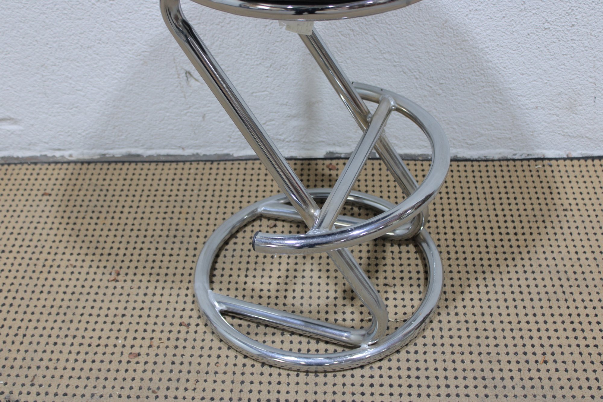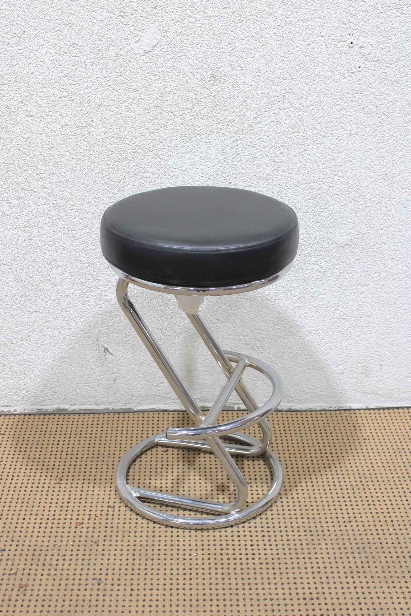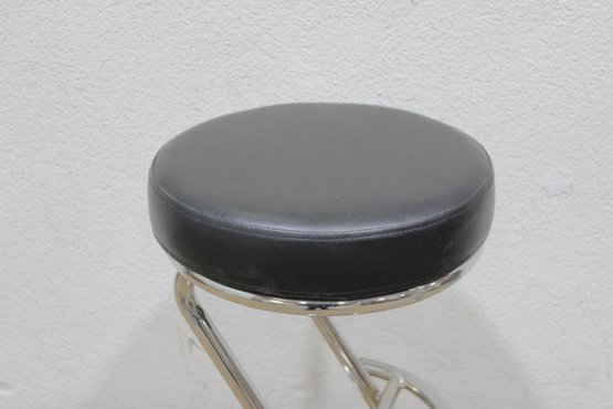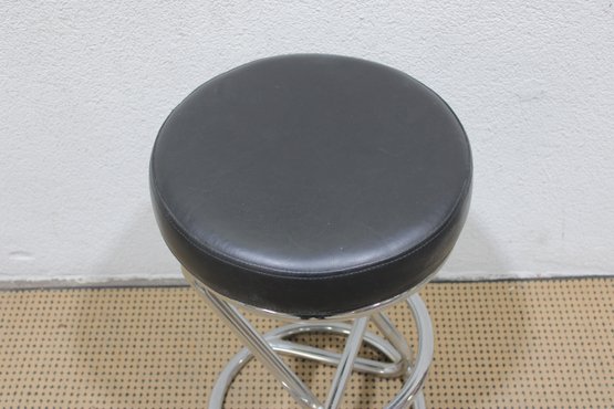 Sleek and contemporary, this swivel bar stool features a polished chrome base paired with a comfortable black padded seat. Measuring approximately 25.5 inches high with a 15.5-inch round seat, it’s perfectly sized for use at kitchen counters, breakfast bars, or workspaces.