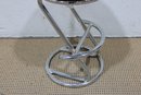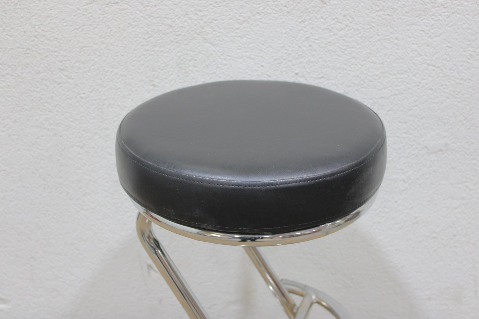 The circular footrest and sculptural metal support provide stability while adding a modern, industrial touch. The seat swivels smoothly, making it easy to turn and adjust while seated. Compact yet stylish, this stool works well in both home and commercial settings.