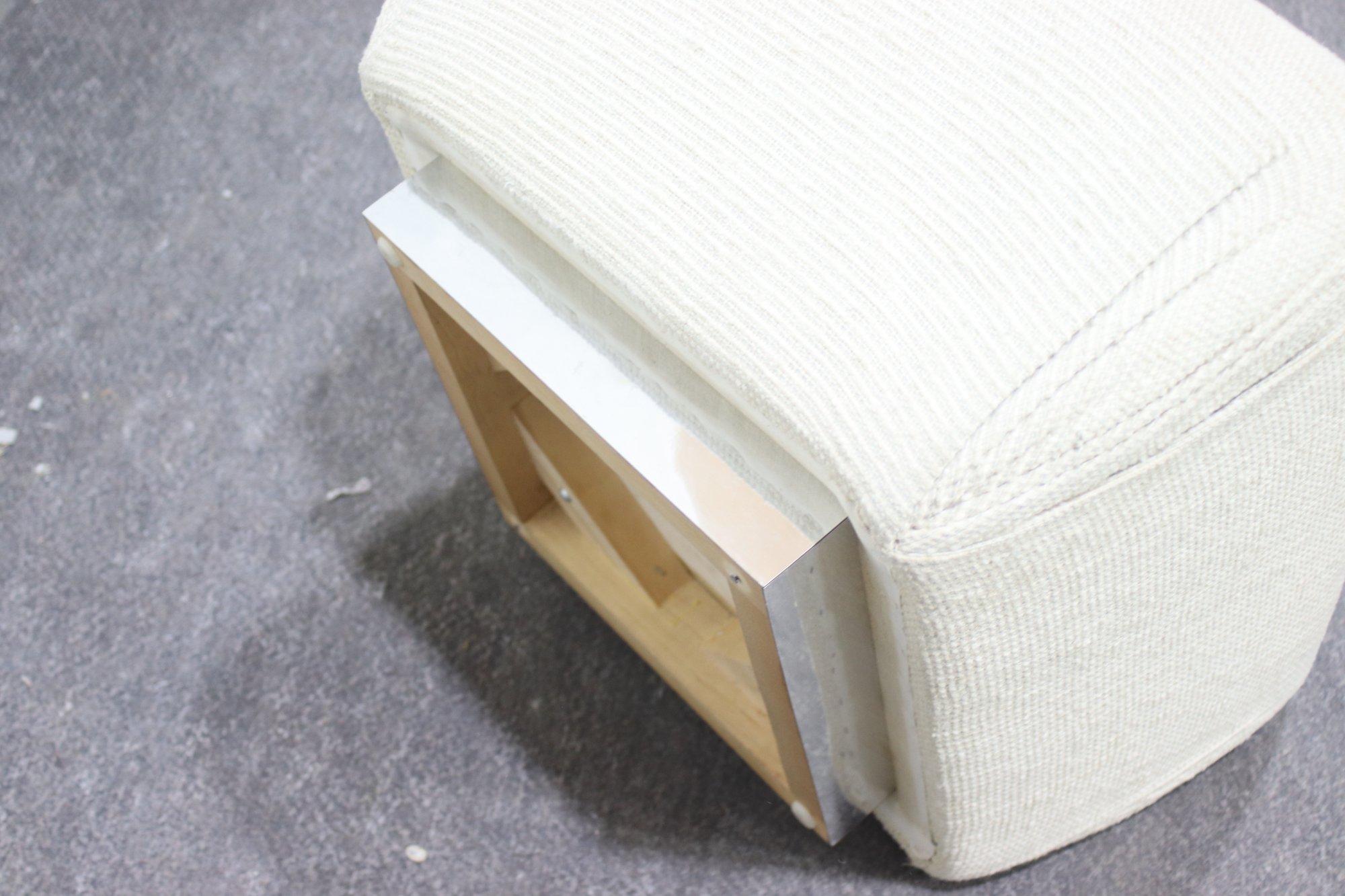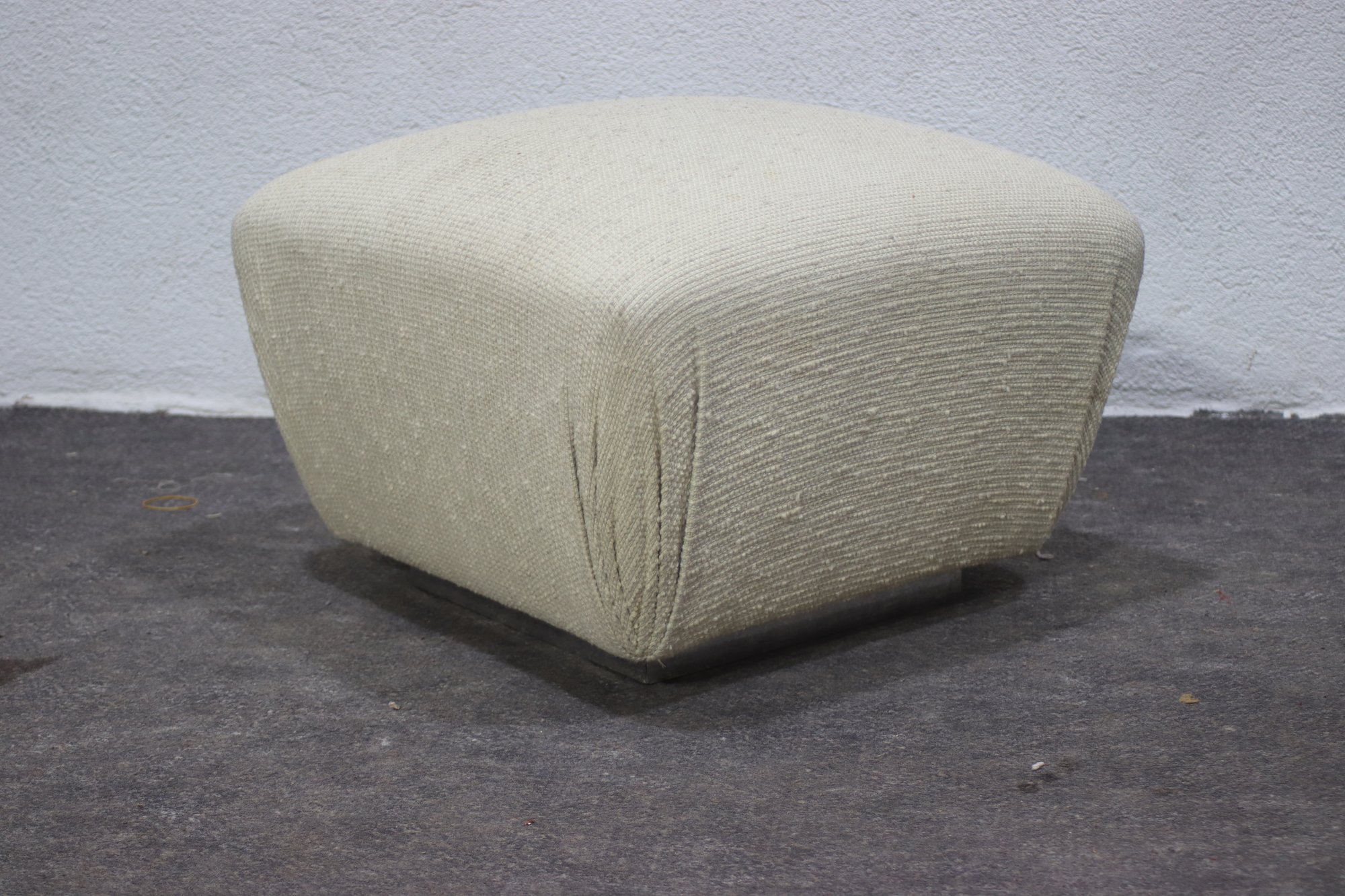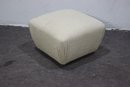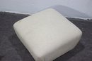 This modern upholstered ottoman is a versatile and stylish addition to any living space. With its neutral beige fabric and contemporary low-profile design, it serves as both a comfortable footrest and an extra seating option.
