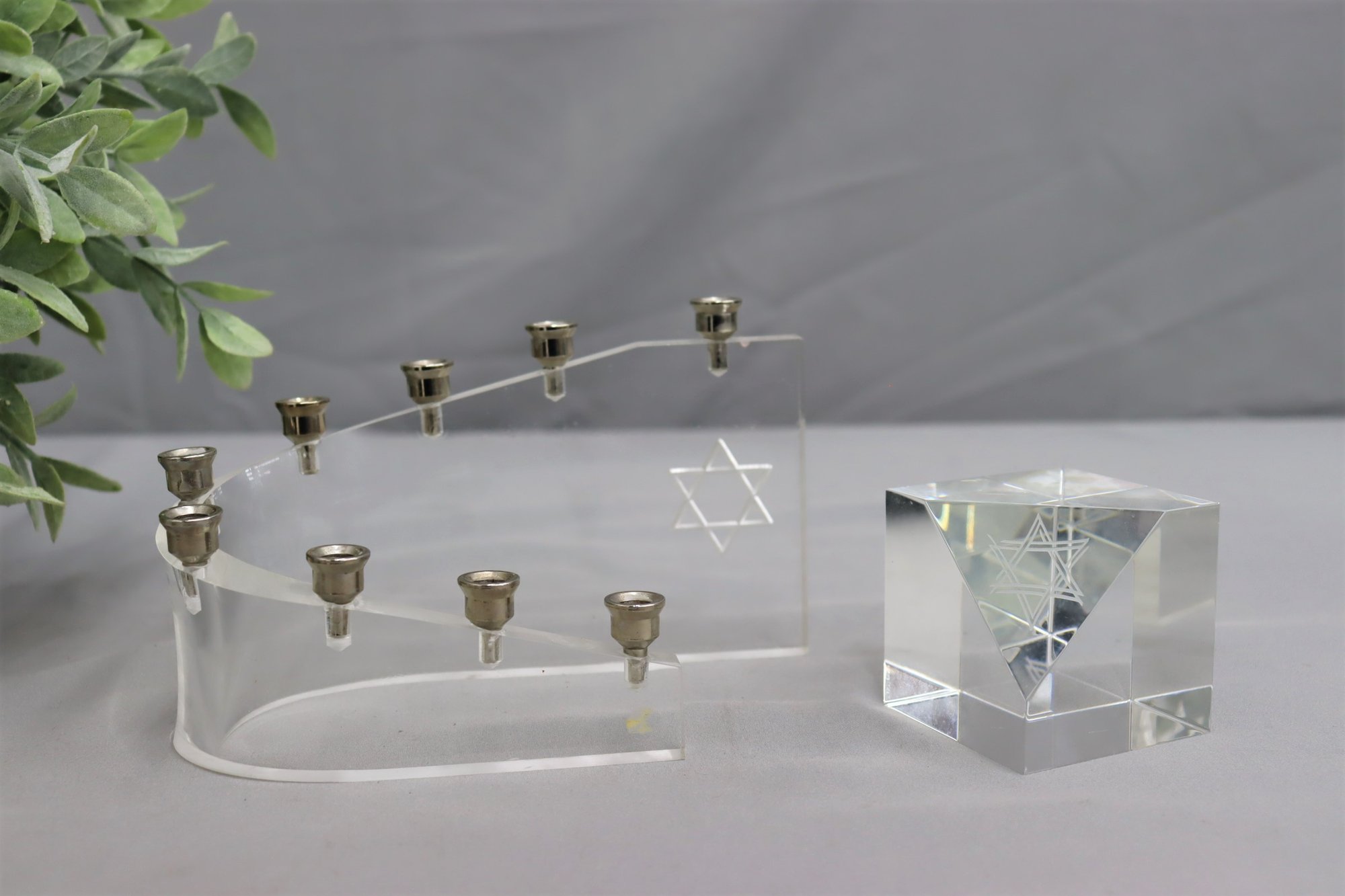 Modernist Brass And Lucite Hanukkah Menorah And Star Of David Cube