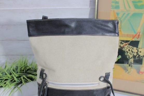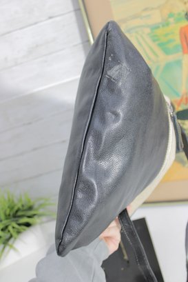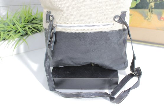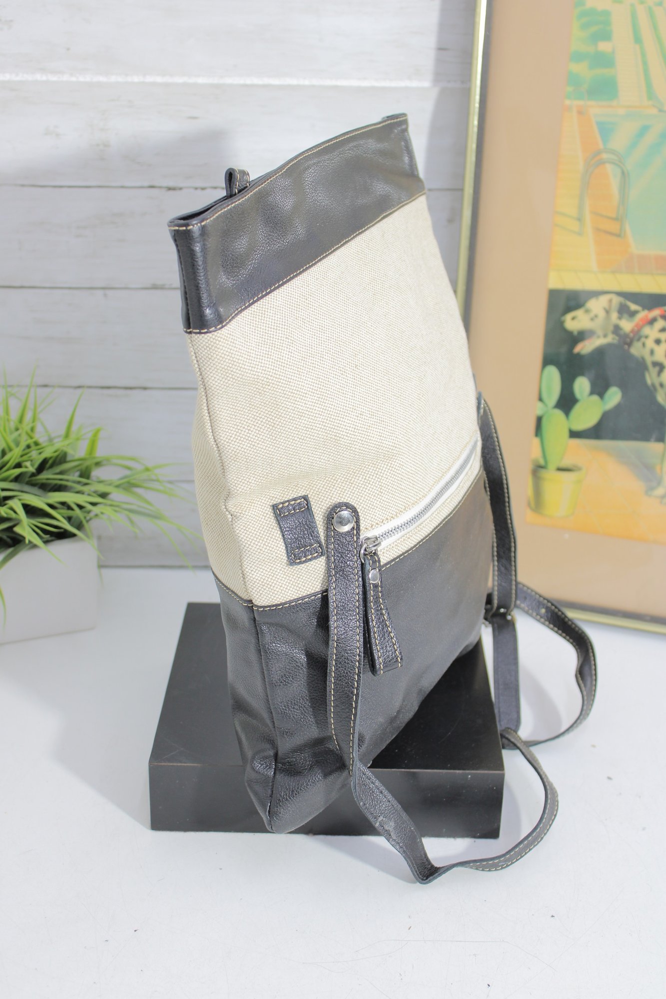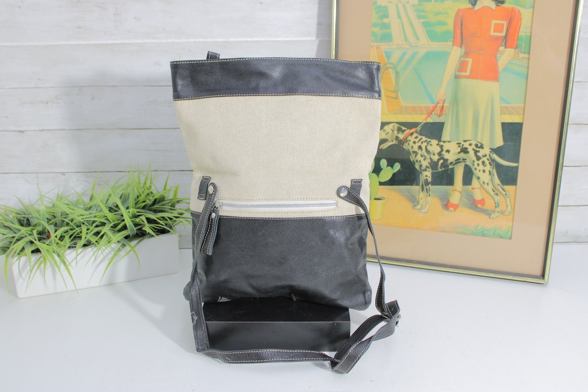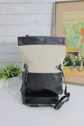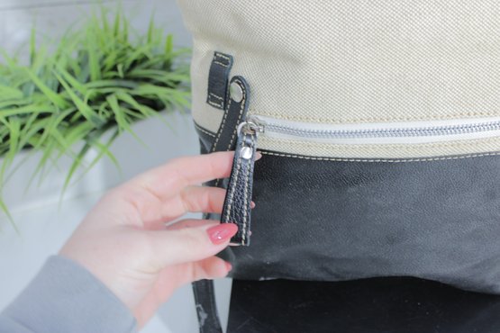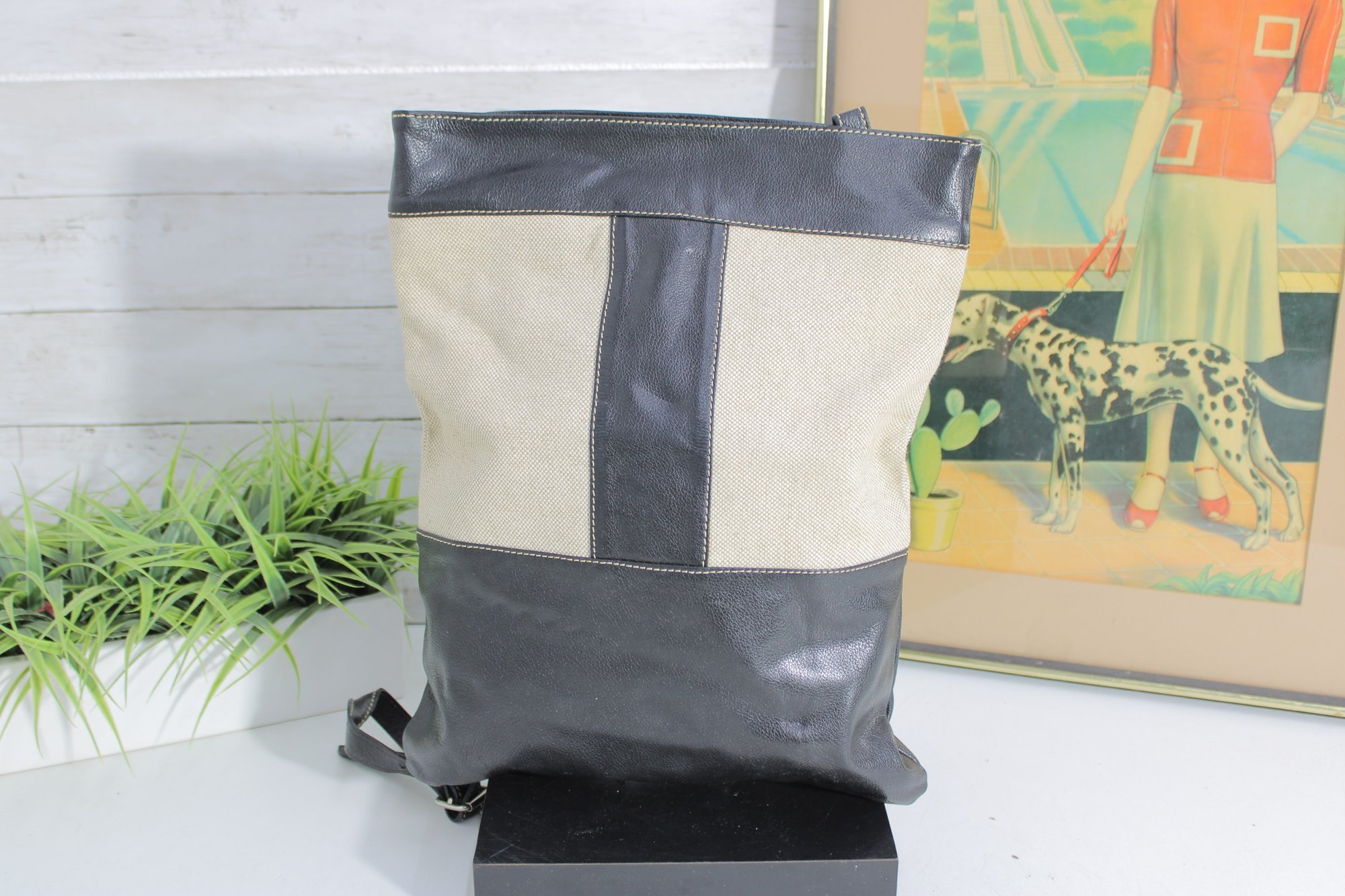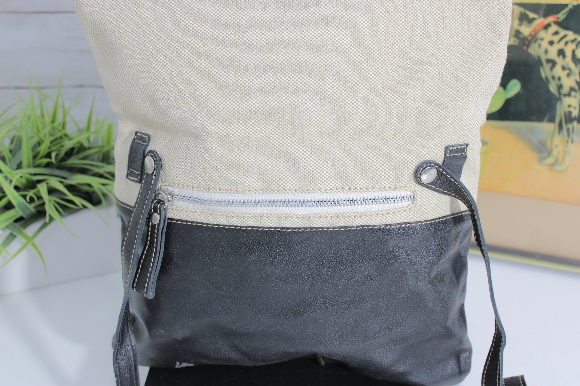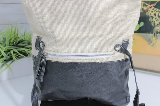 Stylish MODUS RIO shoulder bag crafted from a sophisticated mix of black leather and refined neutral linen. This modern, minimalist design offers a tall, structured silhouette that works beautifully as a shoulder bag or an oversized clutch for a contemporary, fashion-forward look.