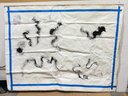 Dramatic, oversized abstract artwork on heavy Belgian canvas, featuring bold black gestural forms across a raw, off-white ground. The sweeping, serpentine marks and circular accents evoke movement and rhythm, creating a powerful, minimalist composition with strong modern presence.