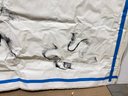 Stamped “Made in Belgium” along the edge, the canvas is substantial and textural, with visible creases, folds, and raw edges that enhance its industrial, artist-forward character. These imperfections are part of the aesthetic, reinforcing its authenticity and scale.