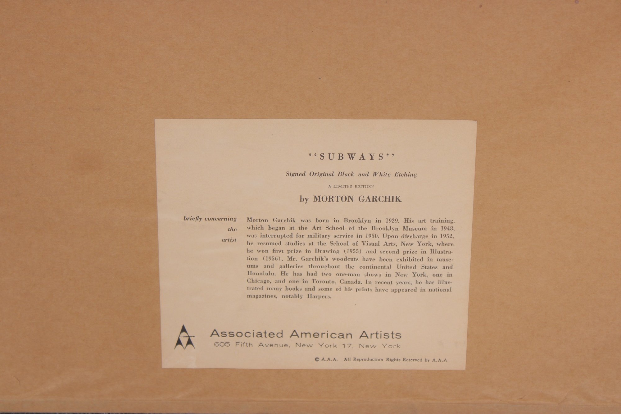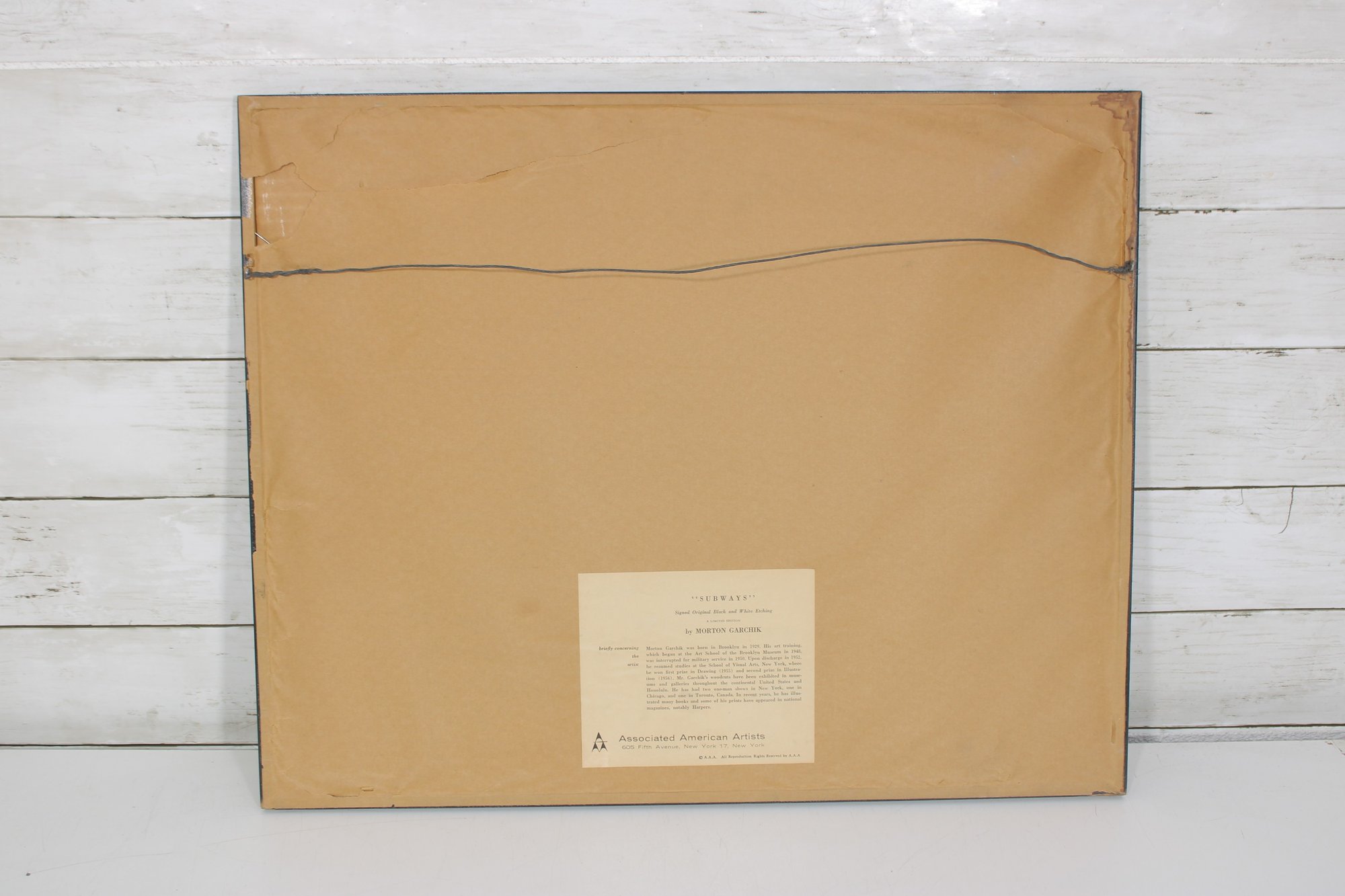 The print appears in good vintage condition with even toning consistent with age. Frame shows light wear from handling. Back retains original Associated American Artists label with artist and title information. Please review all photos carefully as they are part of the description.