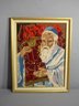 This lot features a meticulously handcrafted needlepoint tapestry, portraying a reverent Rabbi with a Torah scroll. The piece is a rich interweaving of color and texture, skillfully stitched to bring out the serene expression of wisdom on the Rabbi's face, and the intricate details of his traditional attire.
