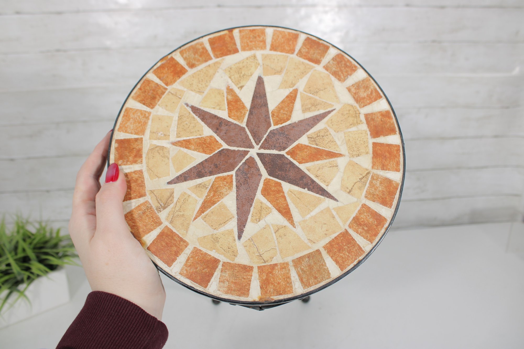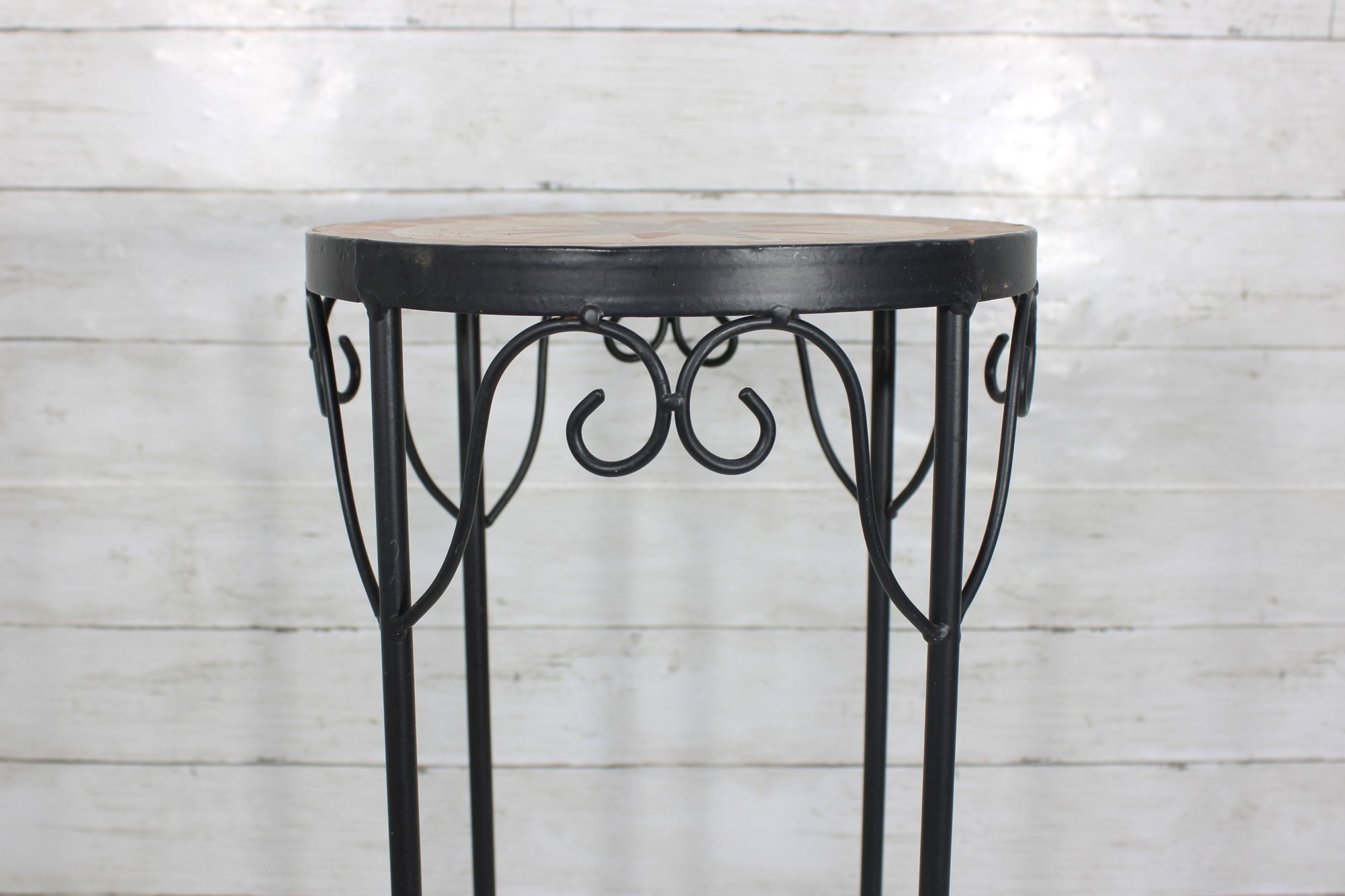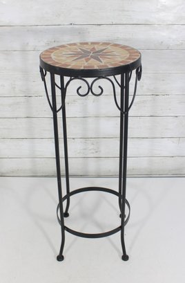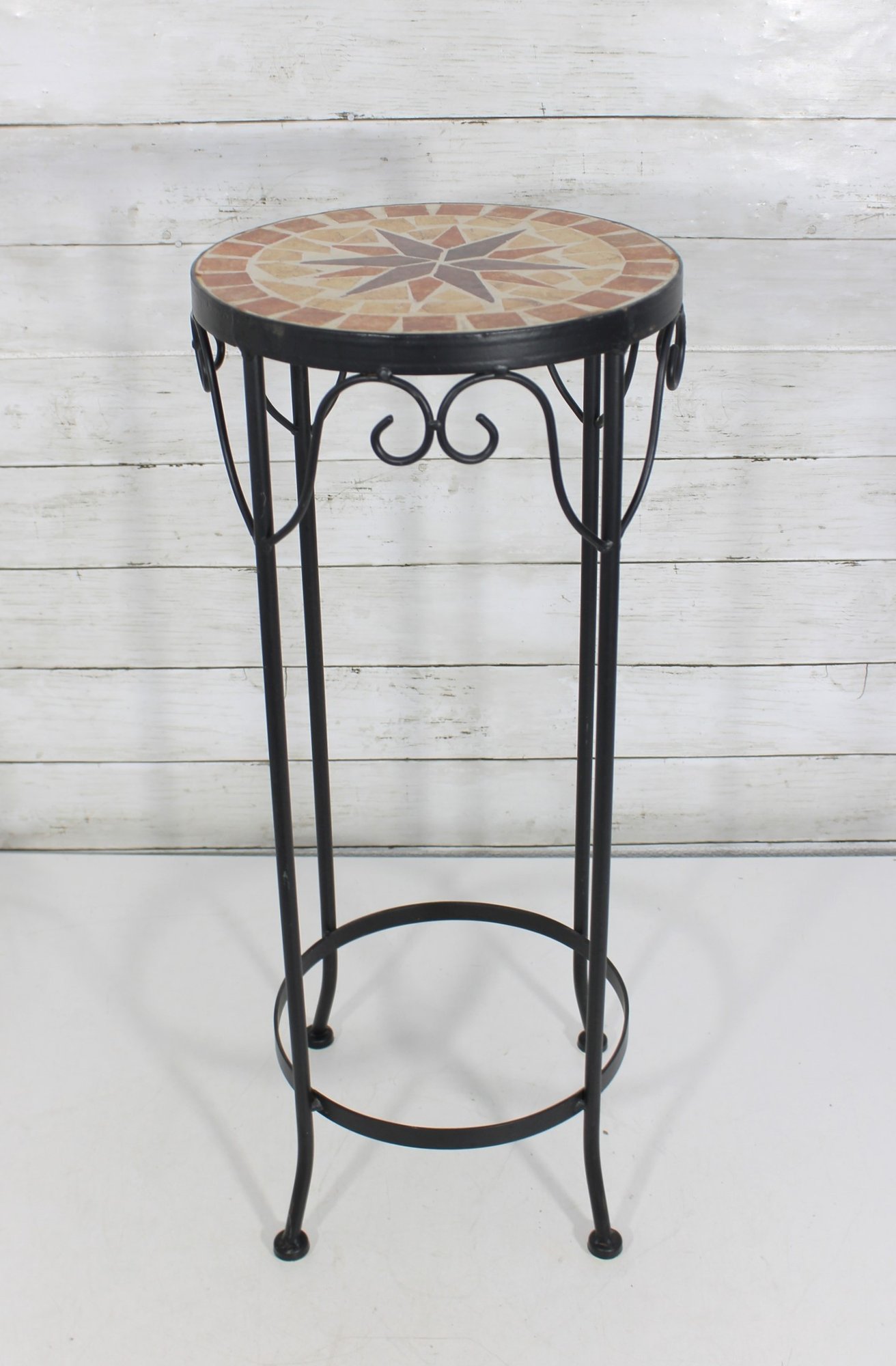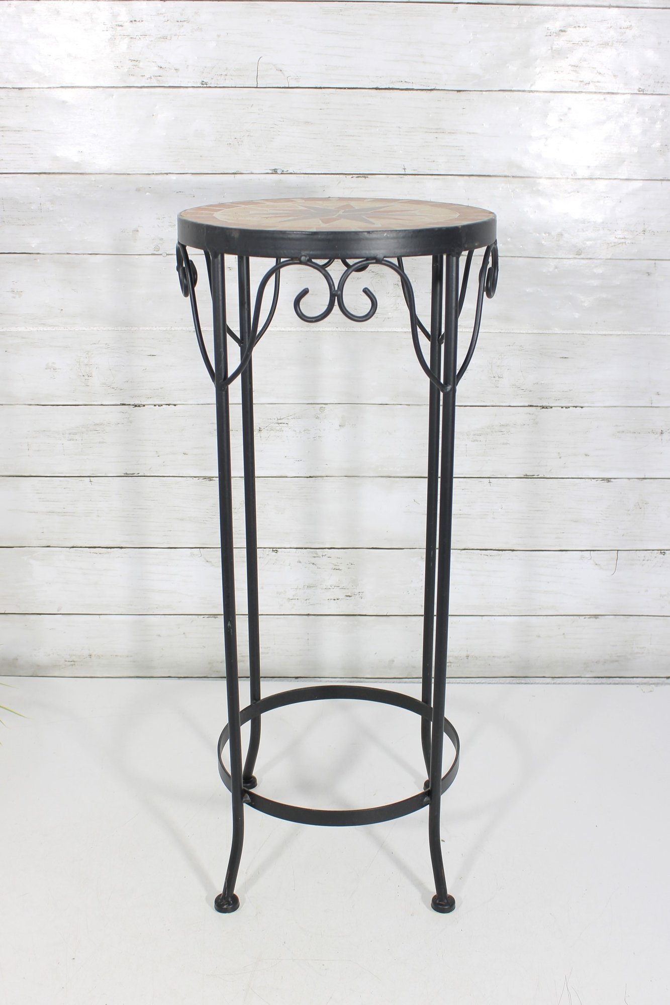 Mosaic Tall Flower Stand With Ceramic Top,24" X 10" Round