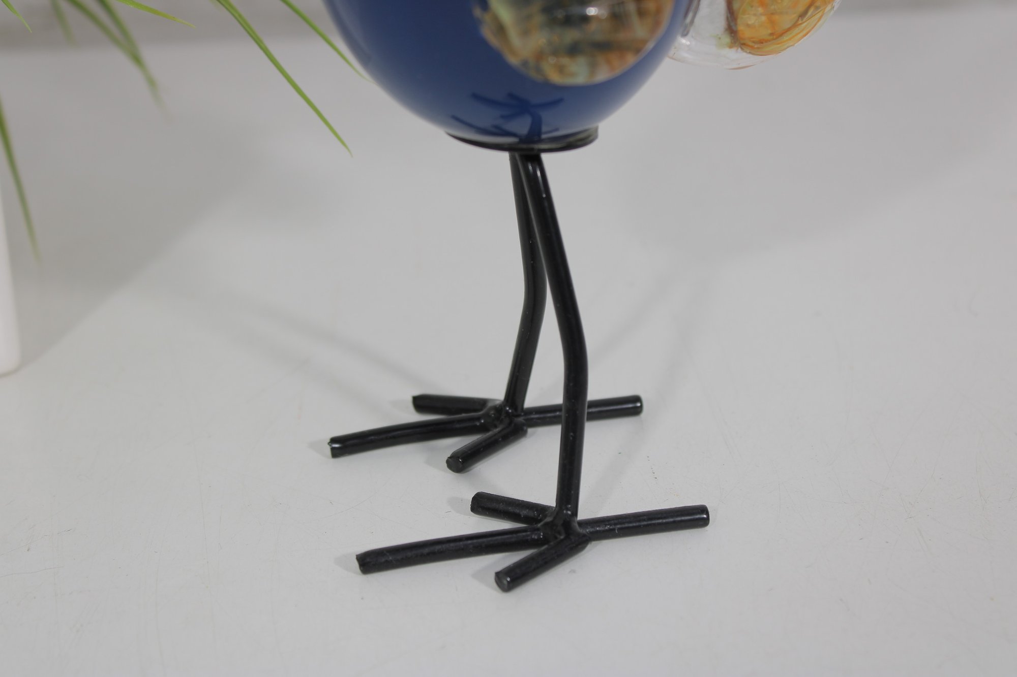 The rooster is mounted on sleek black metal legs, giving it a playful, modern presentation while allowing the glass body to take center stage. The detailed glasswork and bright colors make this a standout decorative piece for any room.