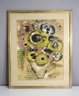 A striking vintage floral painting signed by renowned artist Gio Colucci, featuring a bold, abstract bouquet with vibrant yellow, black, and pink flowers in an expressive, mixed-media style. This impressionistic still life showcases energetic brushstrokes and dynamic composition, making it a standout piece for any art collection.