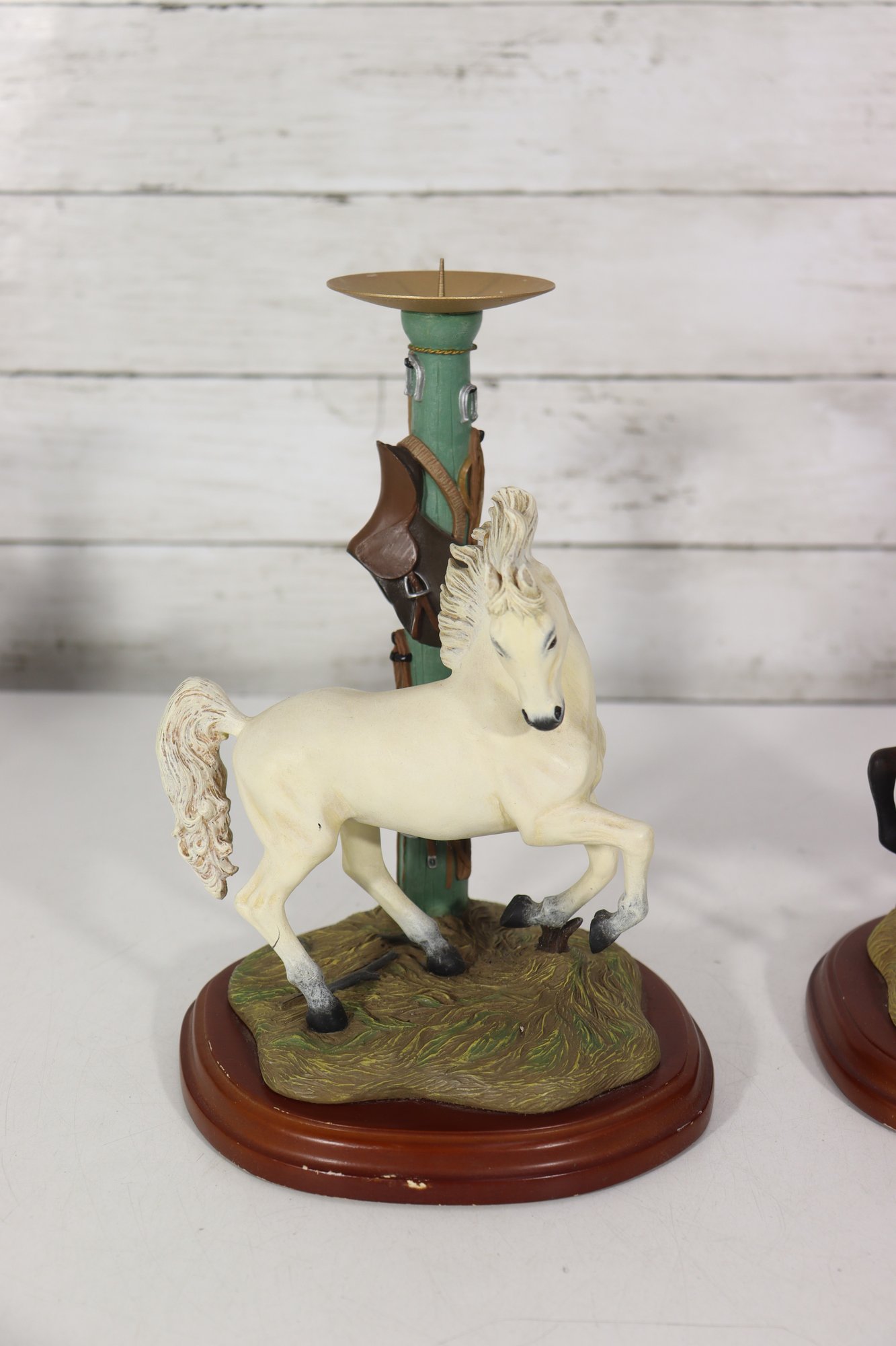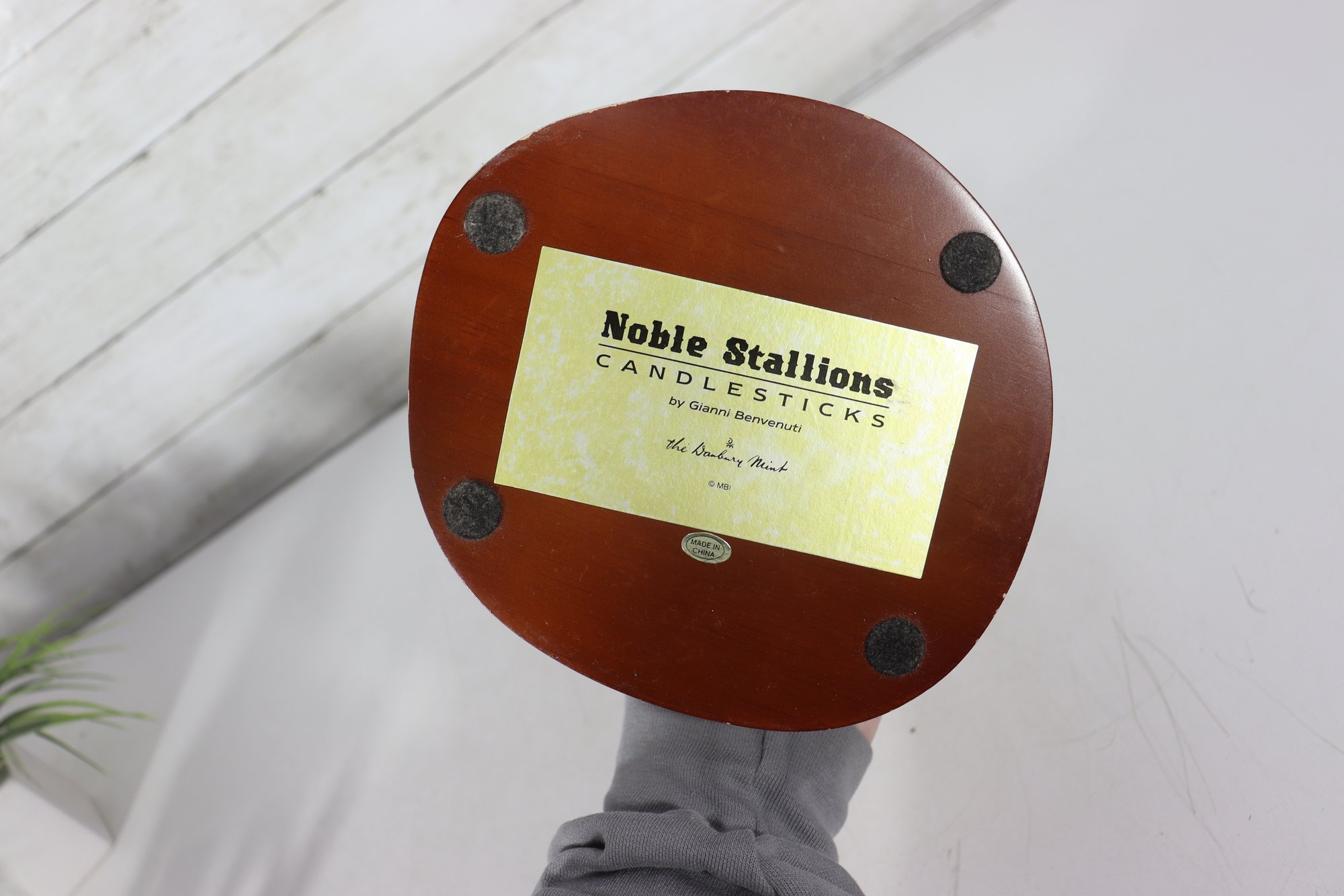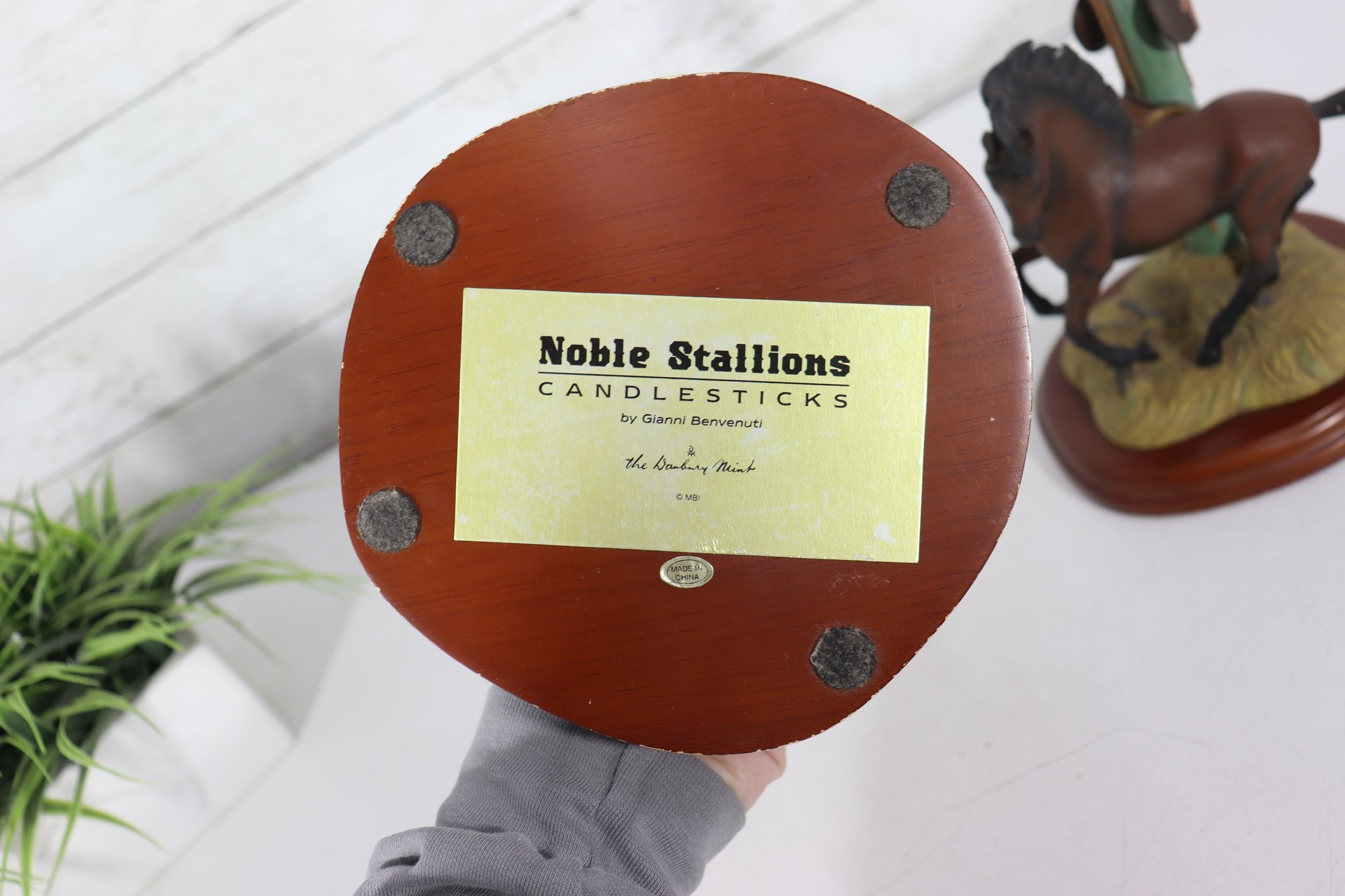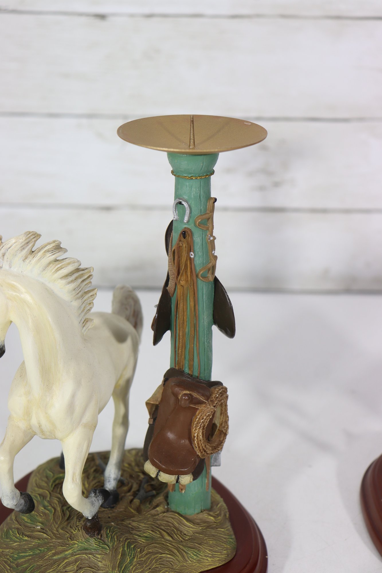 These candlesticks are both decorative and functional, making them perfect for a mantle, shelf, or equestrian-themed décor. The undersides are marked “Noble Stallions Candlesticks”, confirming the set.