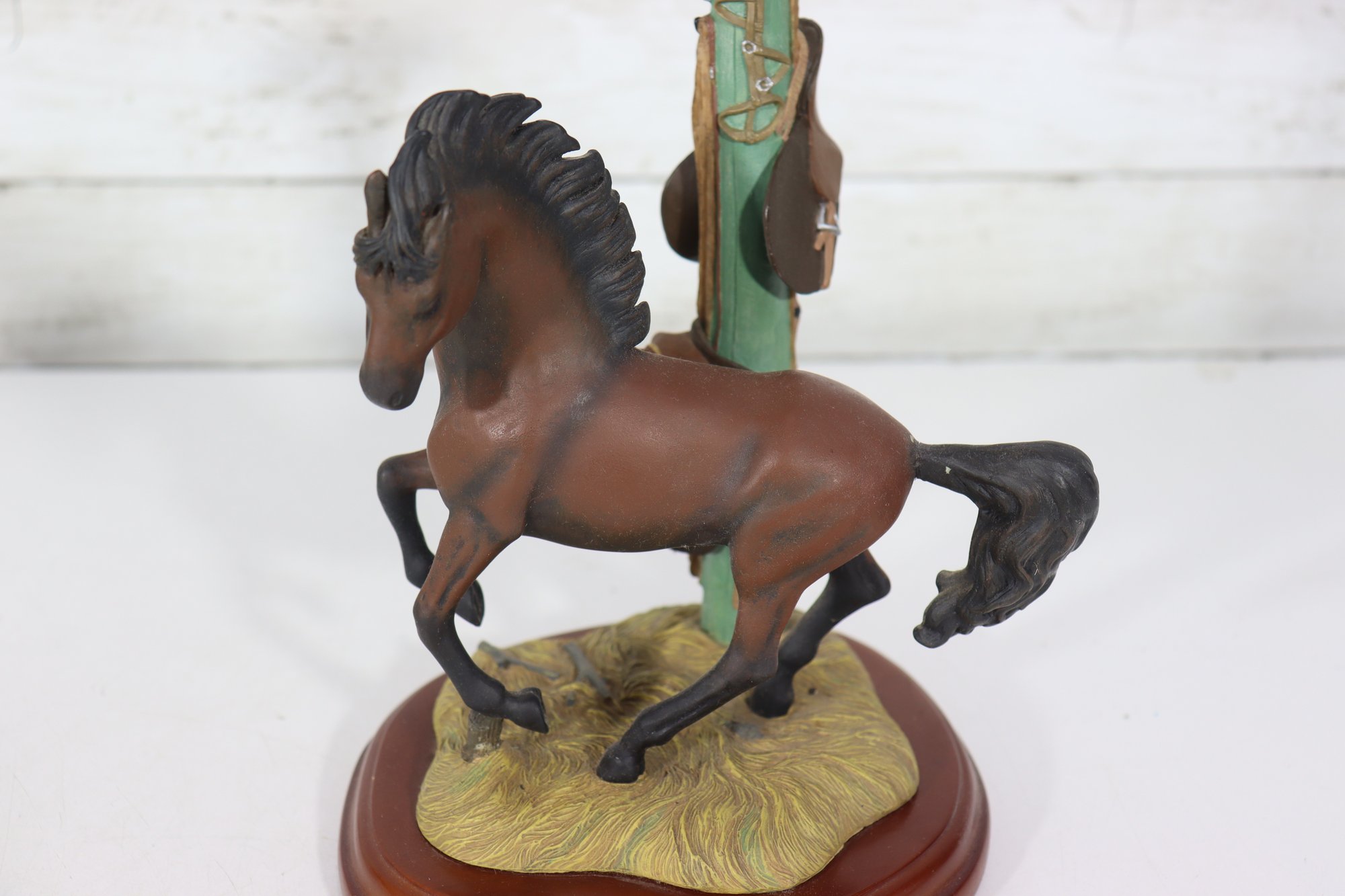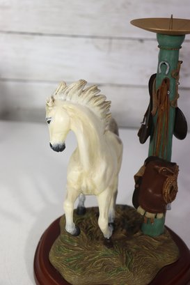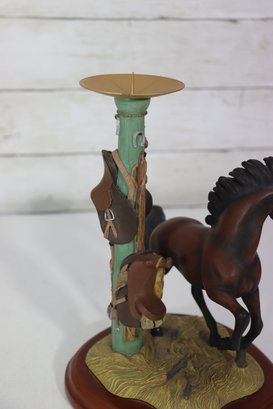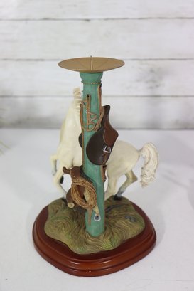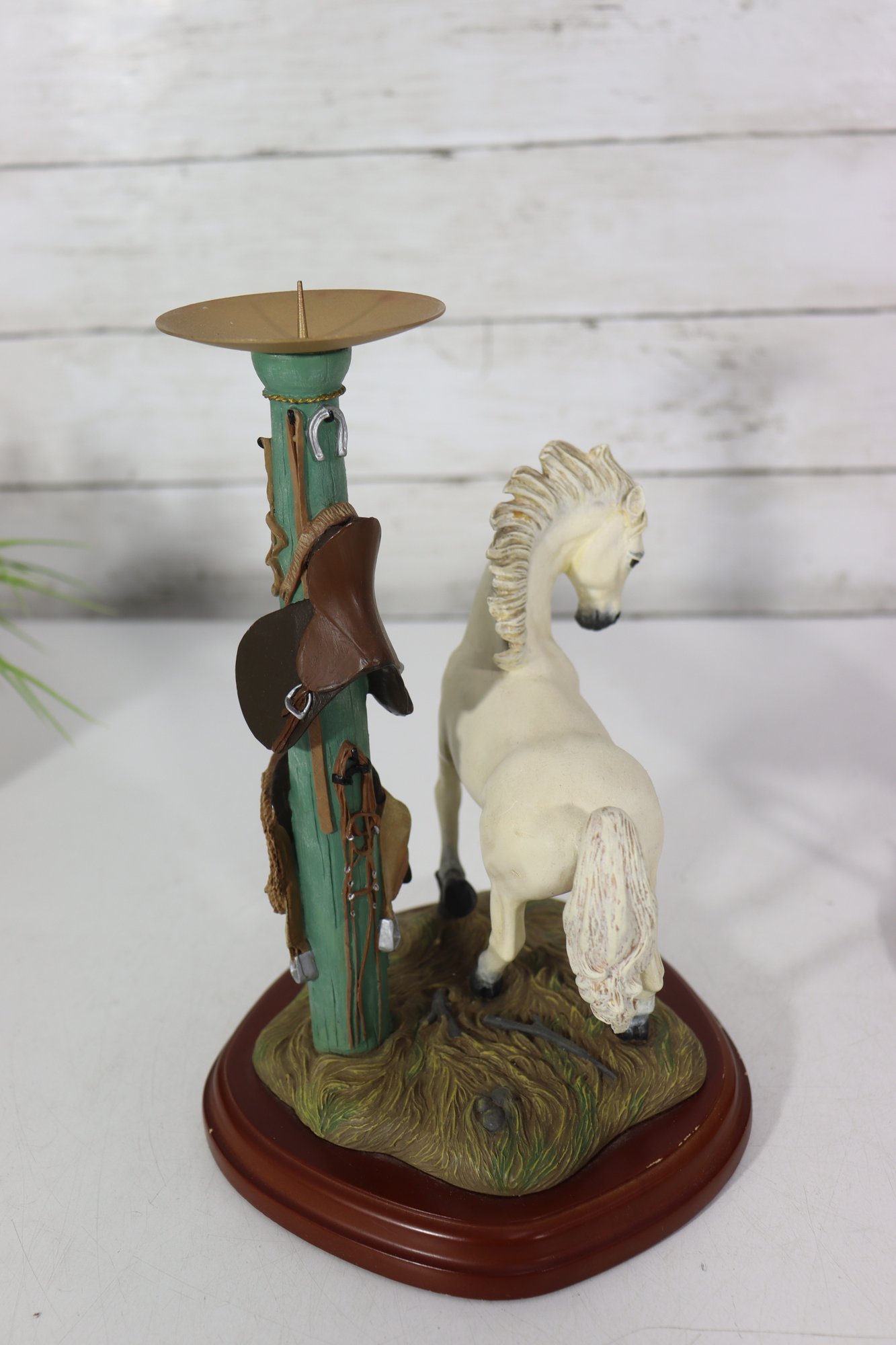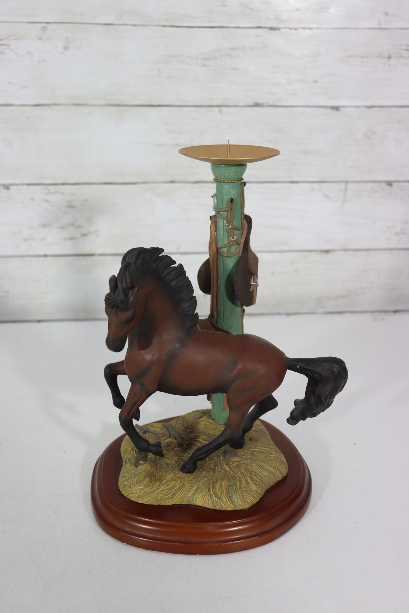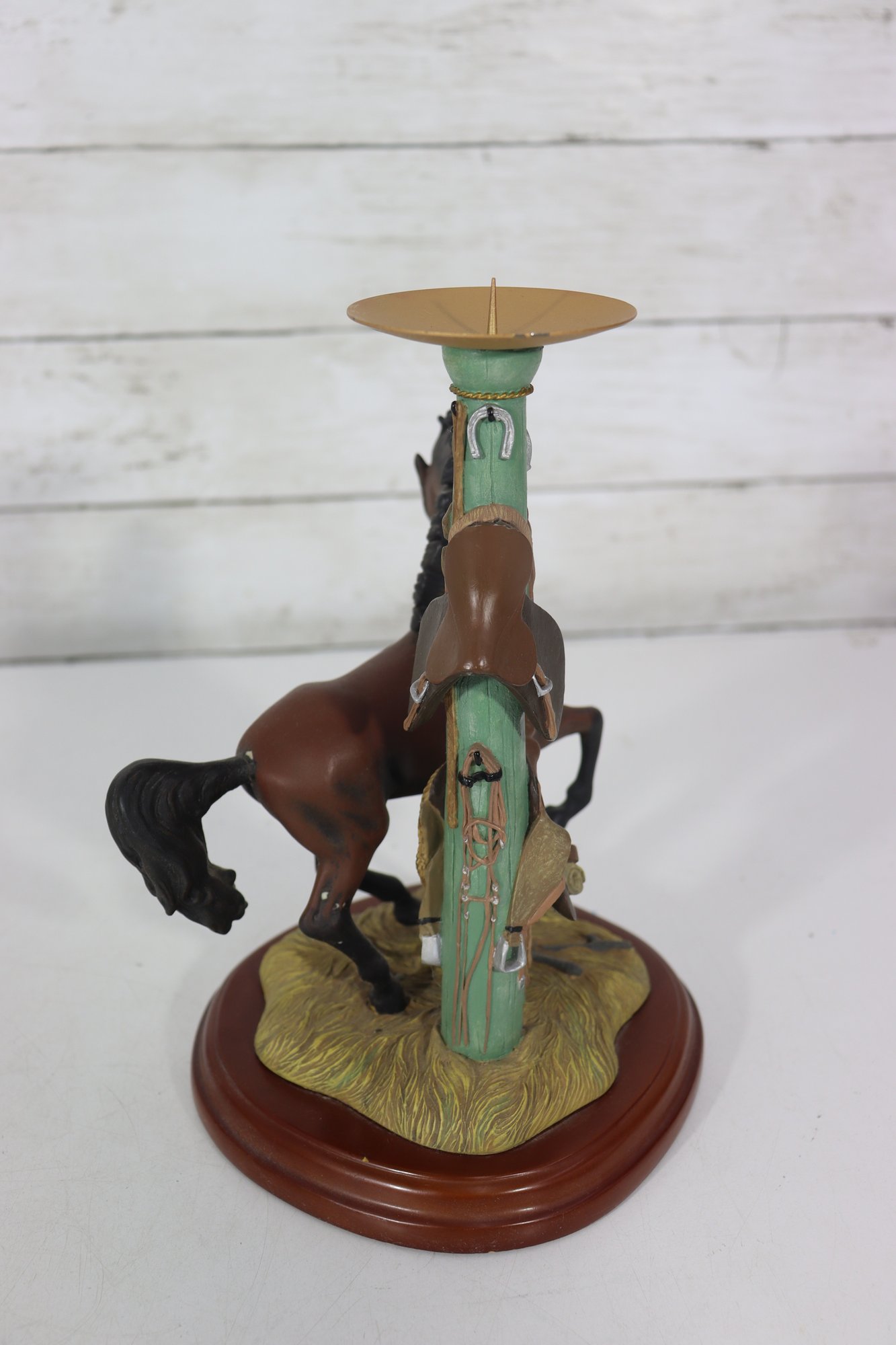These candlesticks are both decorative and functional, making them perfect for a mantle, shelf, or equestrian-themed décor. The undersides are marked “Noble Stallions Candlesticks”, confirming the set.