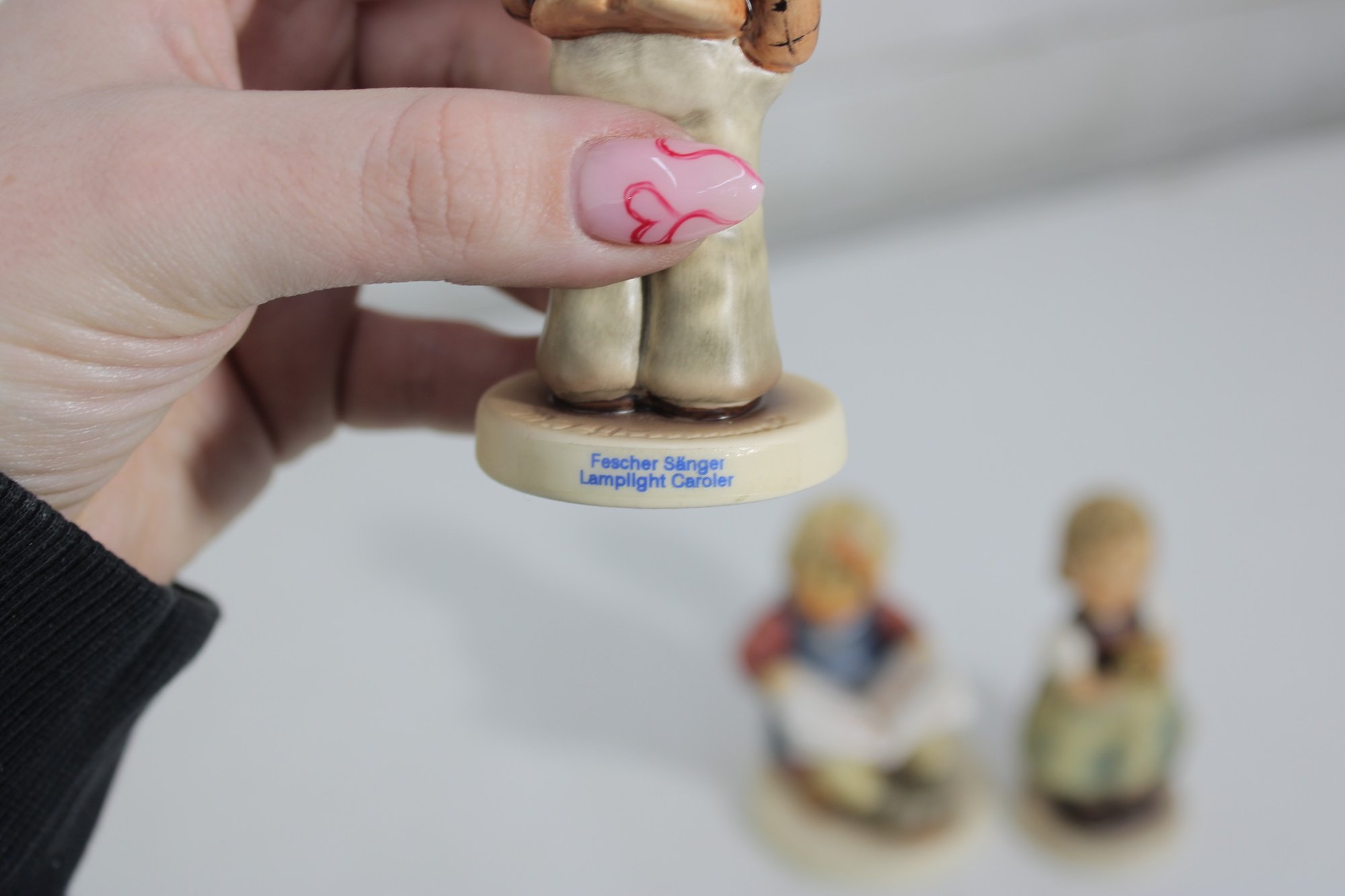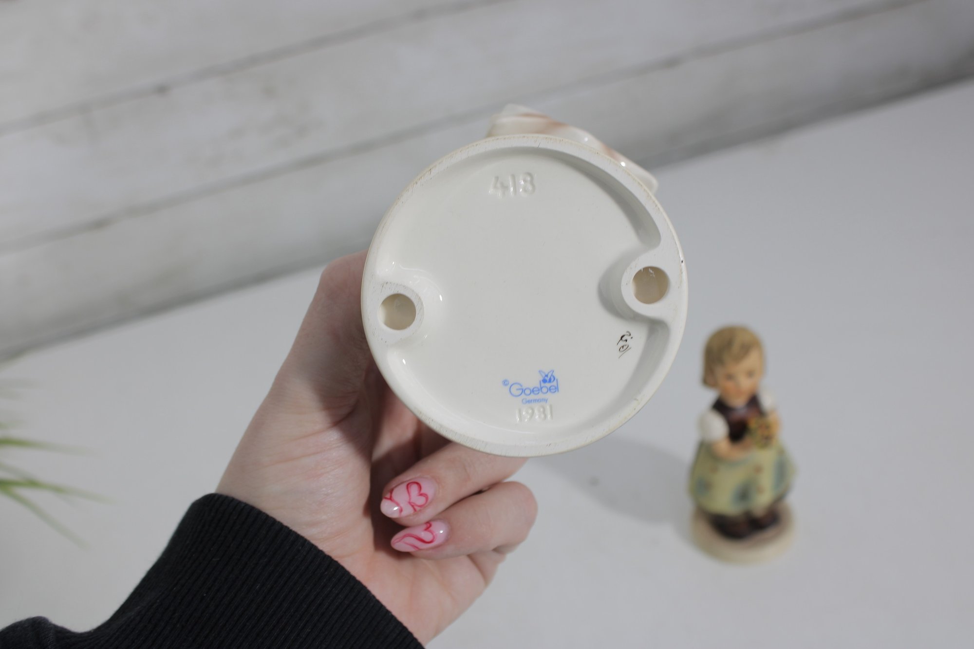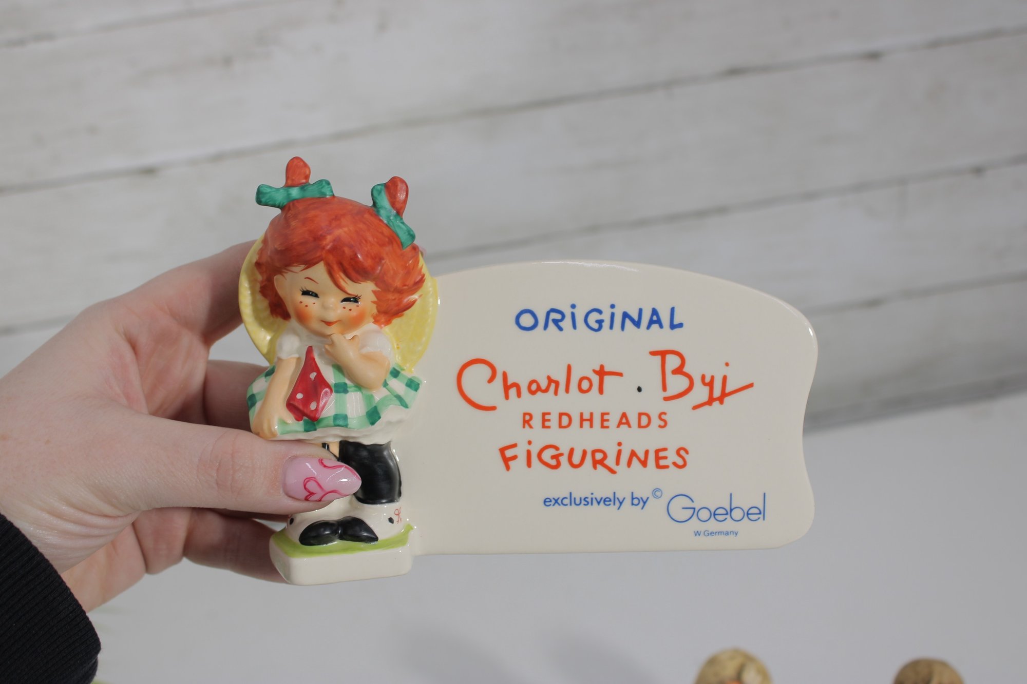 This charming lot features four authentic Goebel Hummel-style figurines, accompanied by the original “Charlotte Byj – Redheads Figurines” display sign. Each piece showcases the sweet, nostalgic artistry these beloved collectibles are known for, depicting children in tender, everyday moments.