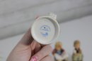 The figurines are marked on the bases and include a mix of standing and seated figures, each hand-painted with soft colors and fine detail. The included display sign adds collector appeal and makes this group perfect for showcasing in a cabinet, shop display, or curated collection.