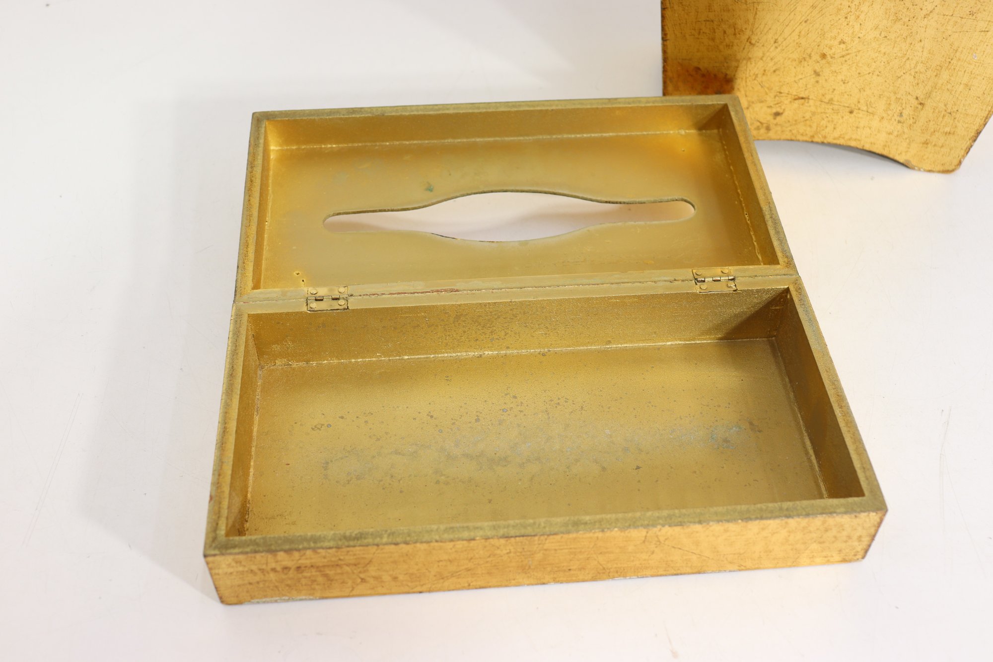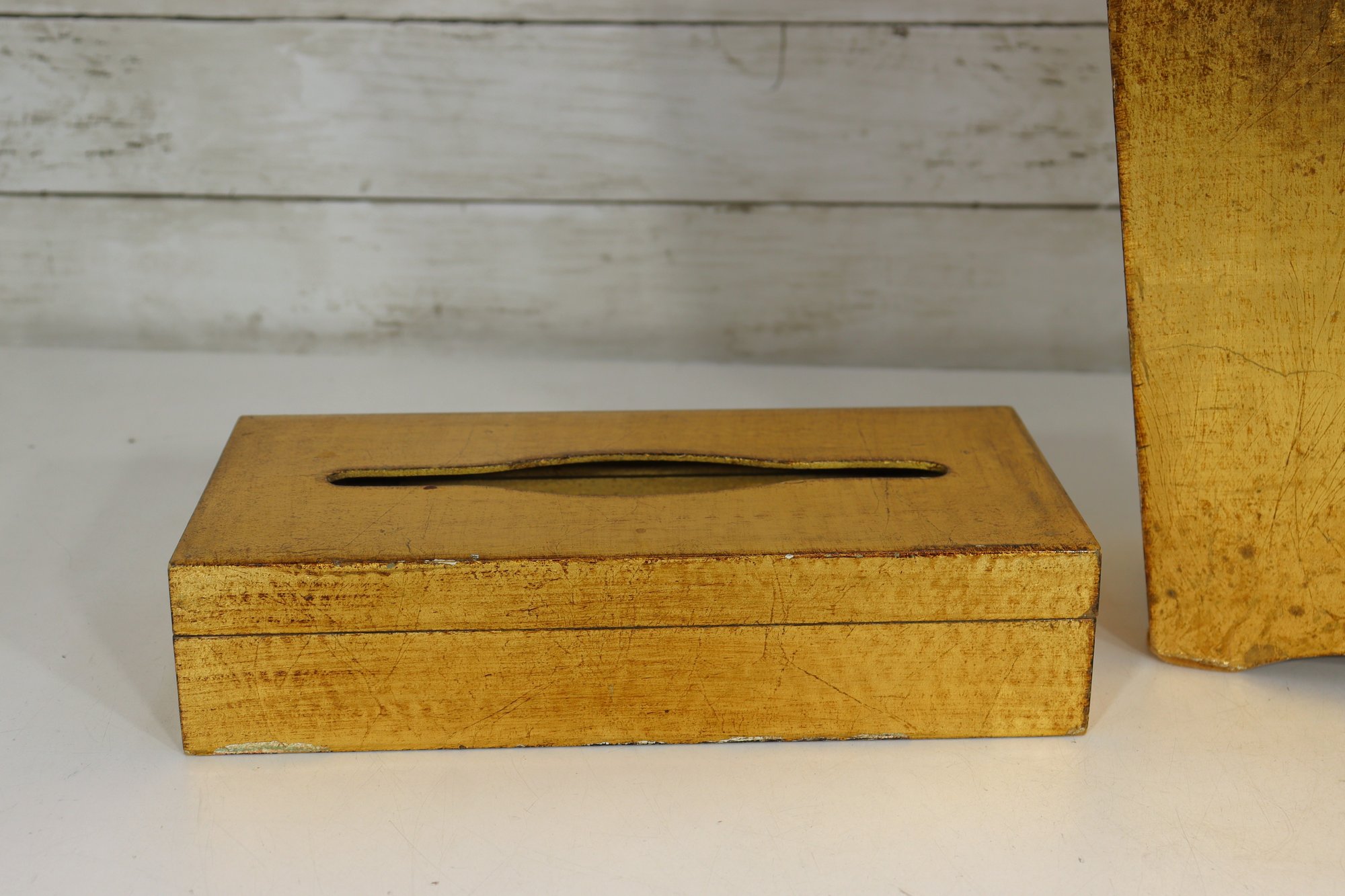 Stylish and refined two-piece decorative bathroom set featuring a coordinating gold gilded waste bin and tissue box holder. Both pieces are finished in a rich metallic gold tone with a lightly textured surface, giving them an elegant and timeless appeal suitable for both traditional and contemporary interiors.