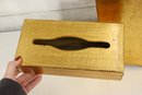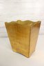The waste bin has a gently flared silhouette with a scalloped rim, while the tissue holder is rectangular with a smooth, refined opening — perfect for vanity or guest bathroom use.
