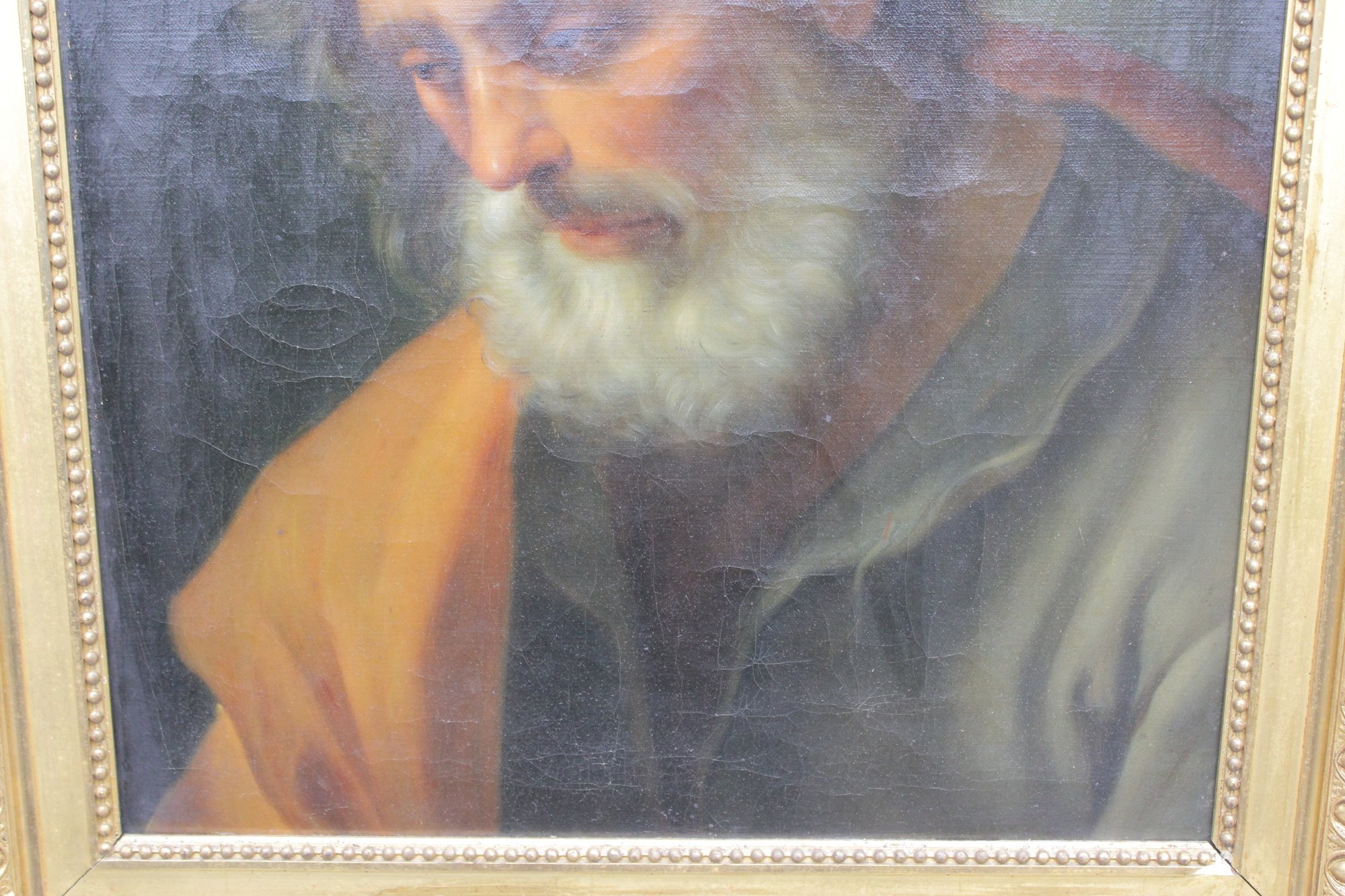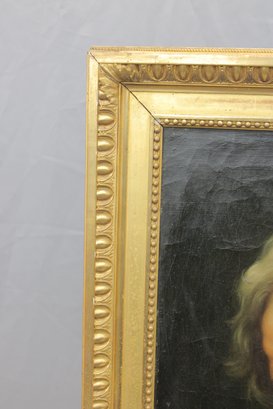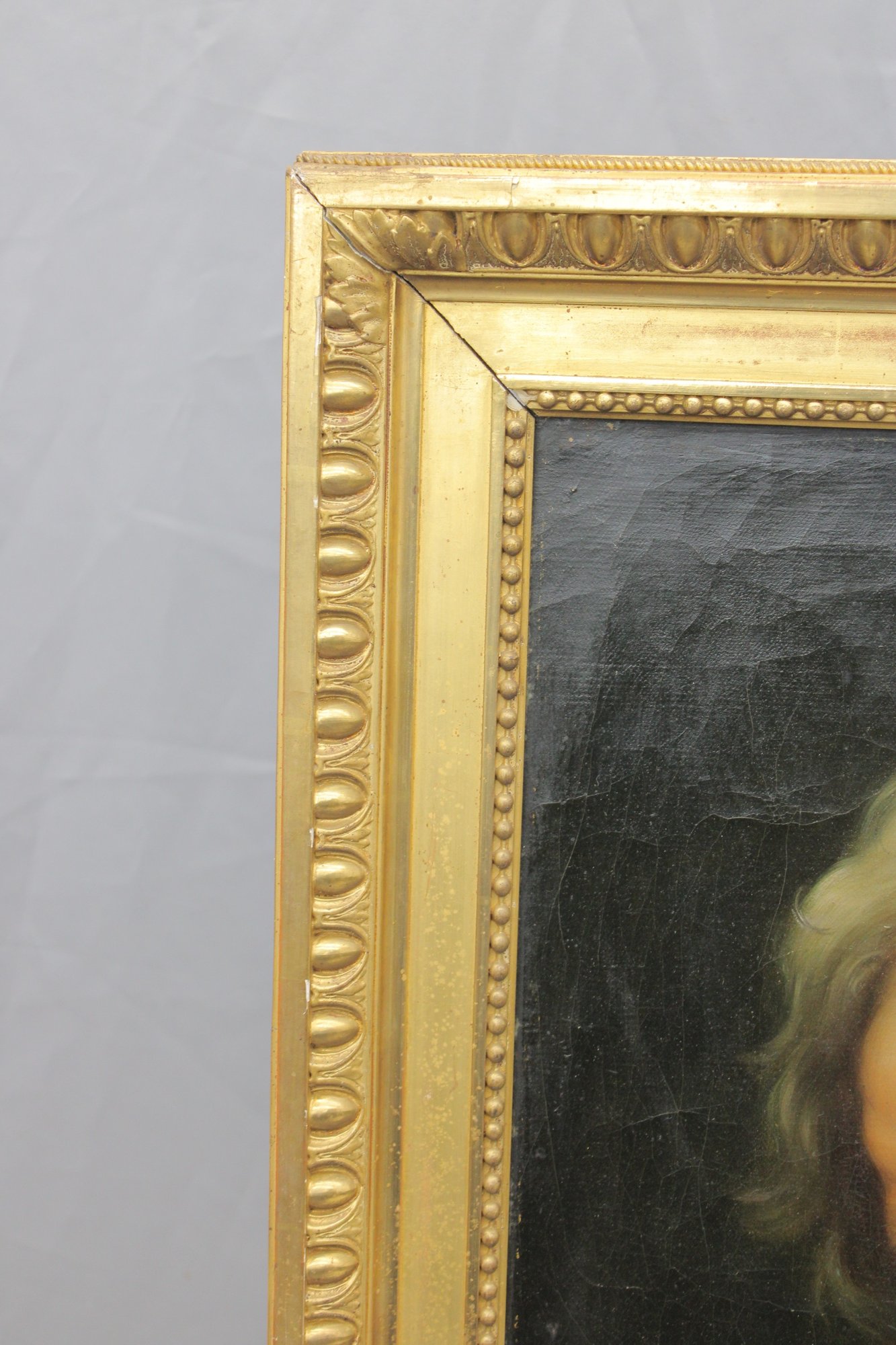 The painting is housed in a decorative gilt frame with beaded and molded detailing, complementing the work’s classical character and making it ready for display. A compelling portrait well suited for collectors of academic, religious, or old-master-inspired works.