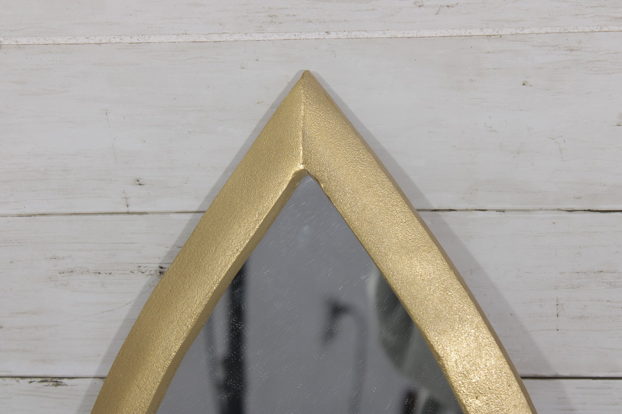 Its pointed teardrop form adds a soft yet sculptural look, while the gold finish gives it a warm contemporary touch. Compact in size, it is ideal for smaller spaces or as part of a layered wall décor display.