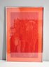 A unique vintage lenticular print with an optical illusion effect, shifting images through red vertical lines. Set in a sleek aluminum frame. A statement piece for lovers of kinetic and optical art.