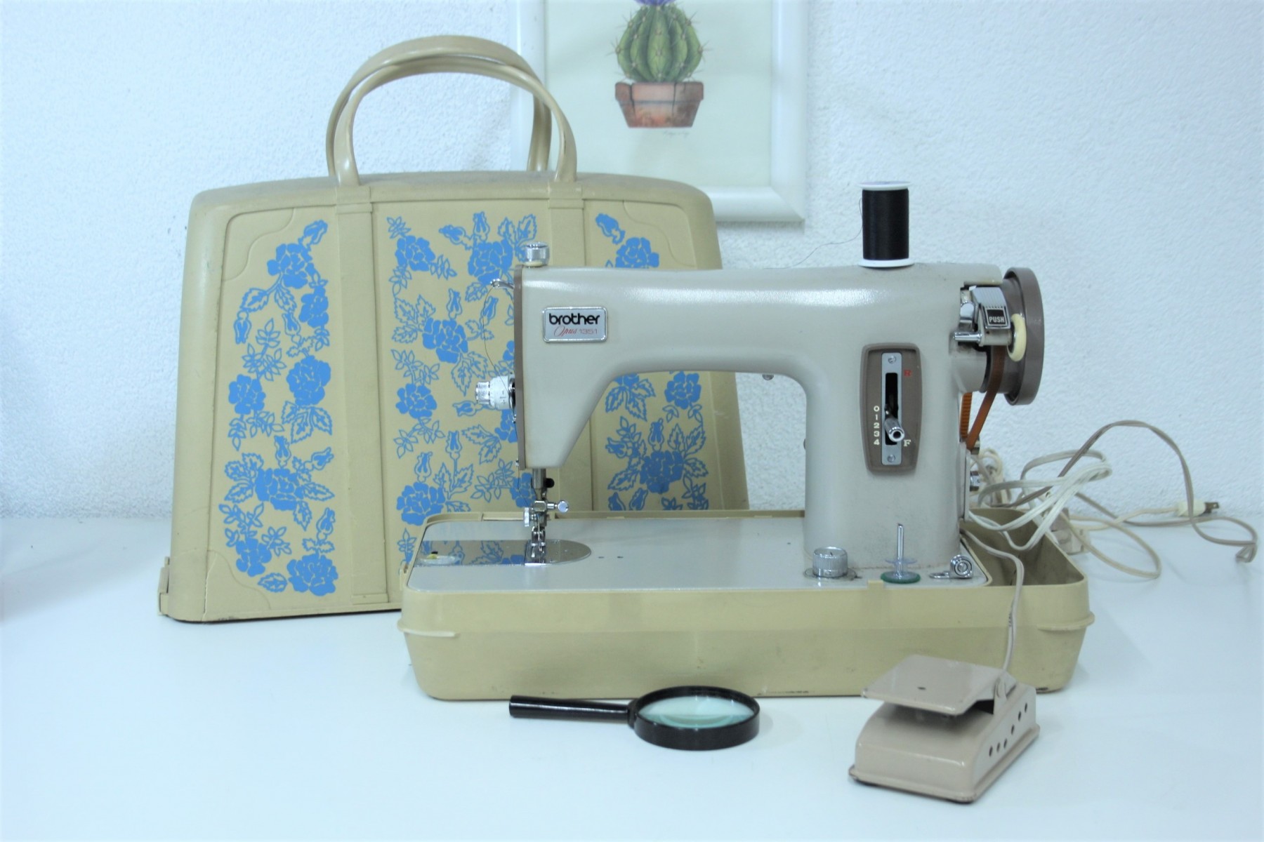Opus 1351, Brother Model C: Warhorse Electric Sewing Machine With Foot Treadle And Brady Bunch Travelcase