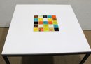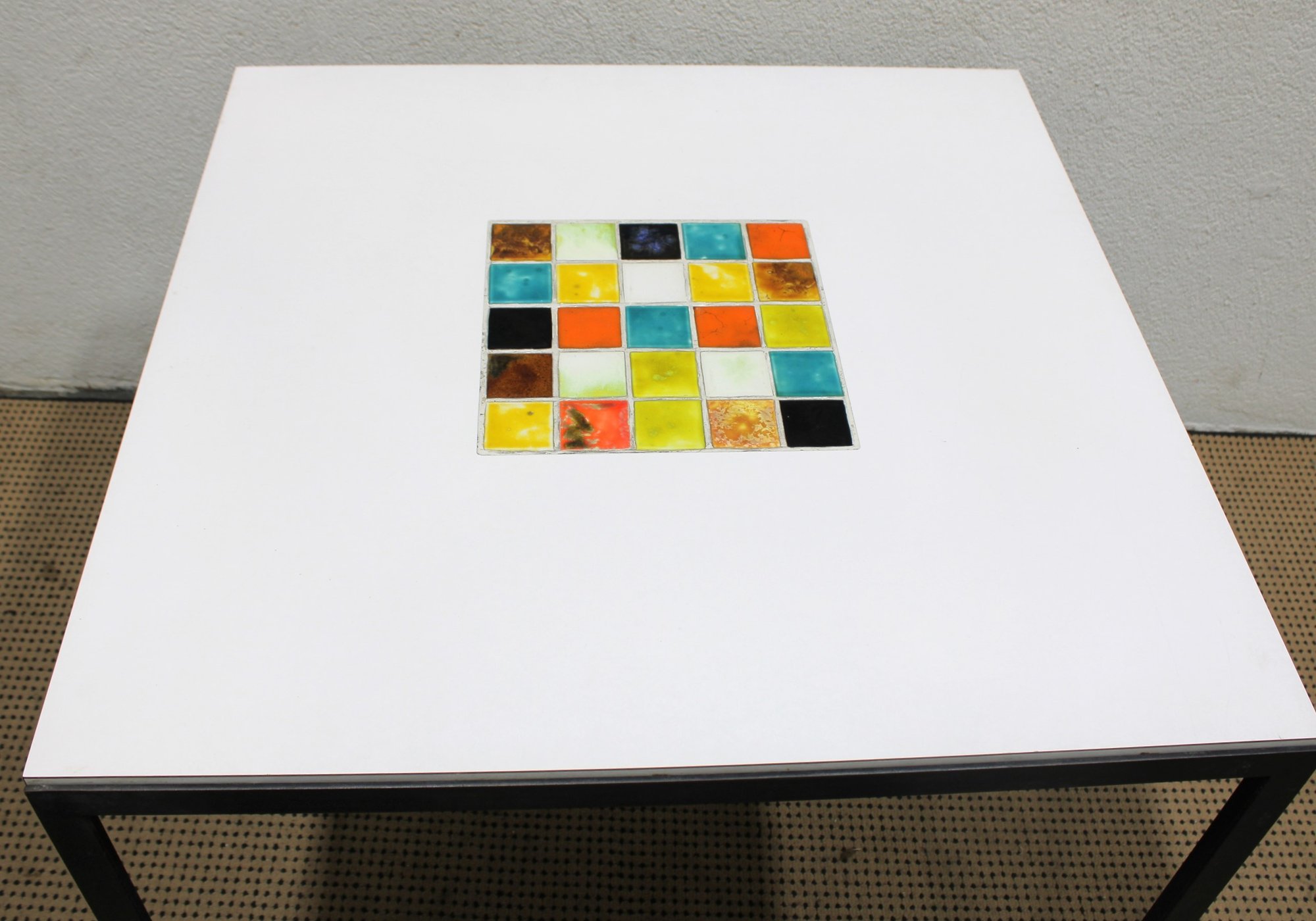 The vibrant square tile inset adds a striking artistic focal point, showcasing a grid of multicolored glazed tiles in classic mid-century tones. The minimalist silhouette and high-quality construction reflect Knoll’s iconic modern design aesthetic.