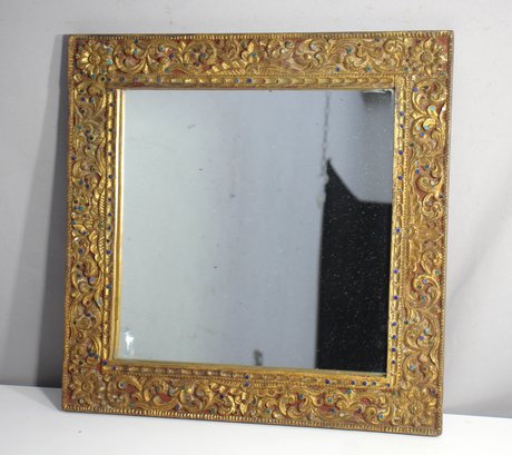 Ornate Gilded Square Mirror With Intricate Floral Detailing-19.5"x19.5"w