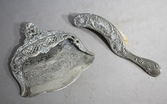 Ornately Engraved Silver Plated Crumb Brush And Pan