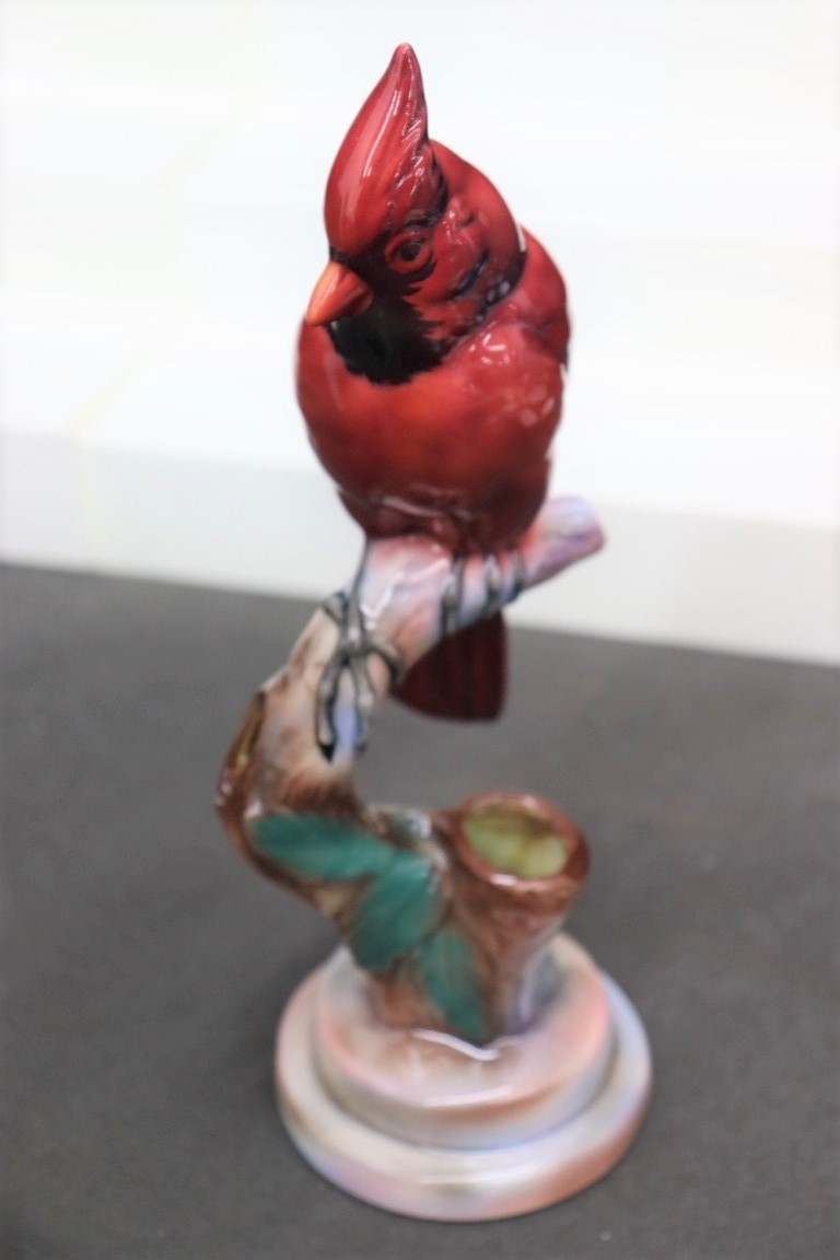 Northern Red Cardinal Perched On Branch Figurine, A Carole Stupell Selection, Two Stupell Stickers On Bottom