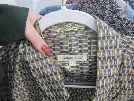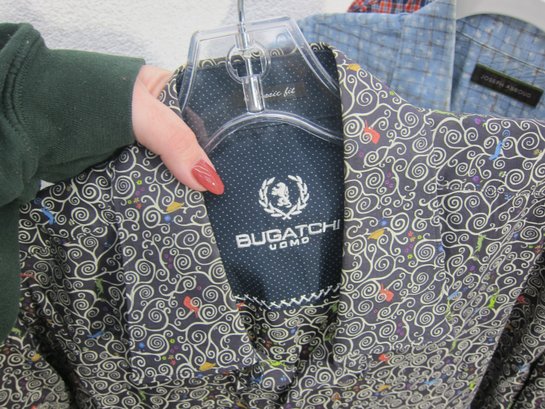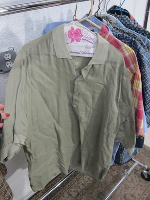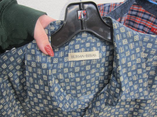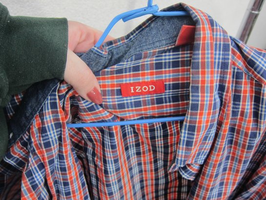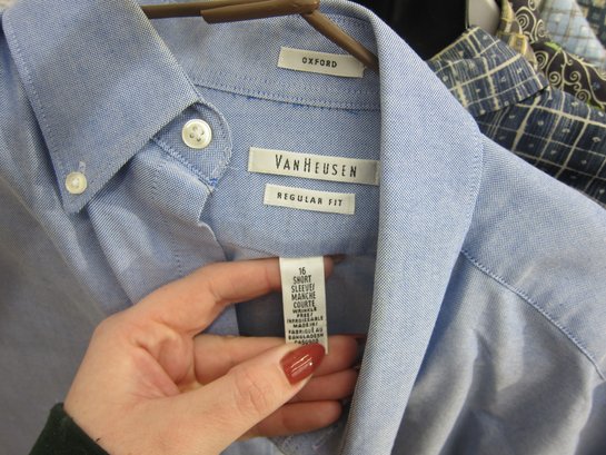 Brands and sizes vary throughout the lot, with pieces ranging across different fits and styles. Visible labels include names such as Van Heusen, IZOD, Bugatchi Uomo, Burma-Bibas, and others, making this an appealing assortment for anyone looking to stock up or resell.