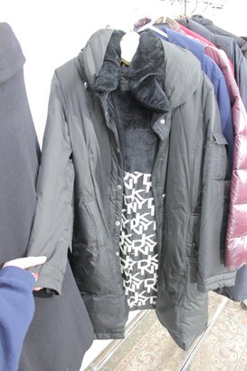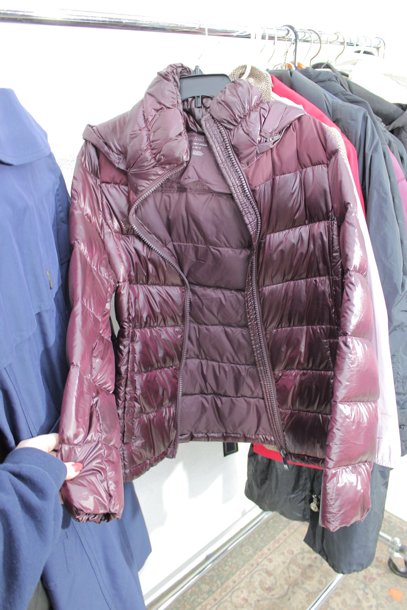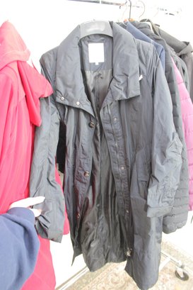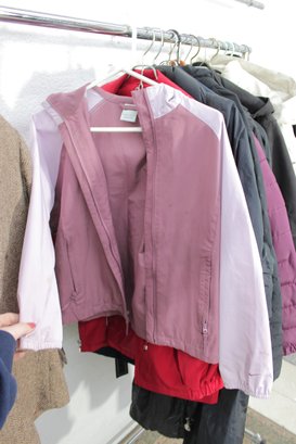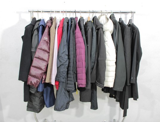 Large rack lot of women’s jackets featuring a variety of puffer, insulated, and casual outerwear styles. This assortment includes lightweight and heavier jackets suitable for fall and winter, offering excellent variety for resale, boutique inventory, or seasonal wardrobe needs.