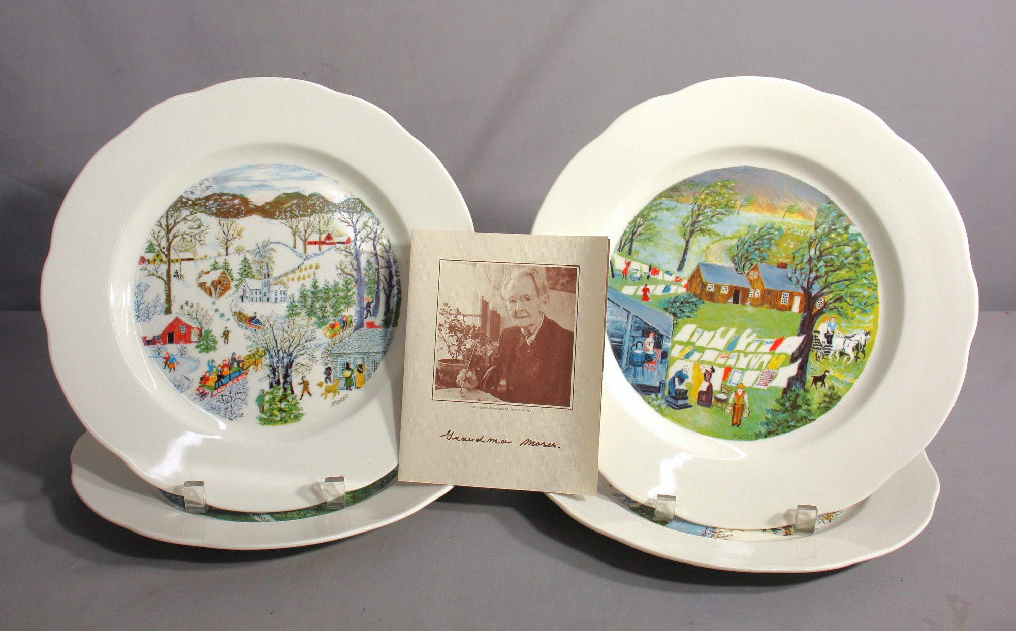 These plates are not merely decorative items but are also keepsakes that preserve the simple yet profound narrative art of Grandma Moses, who began her painting career in her late seventies. Her work has since become an embodiment of American folk culture,