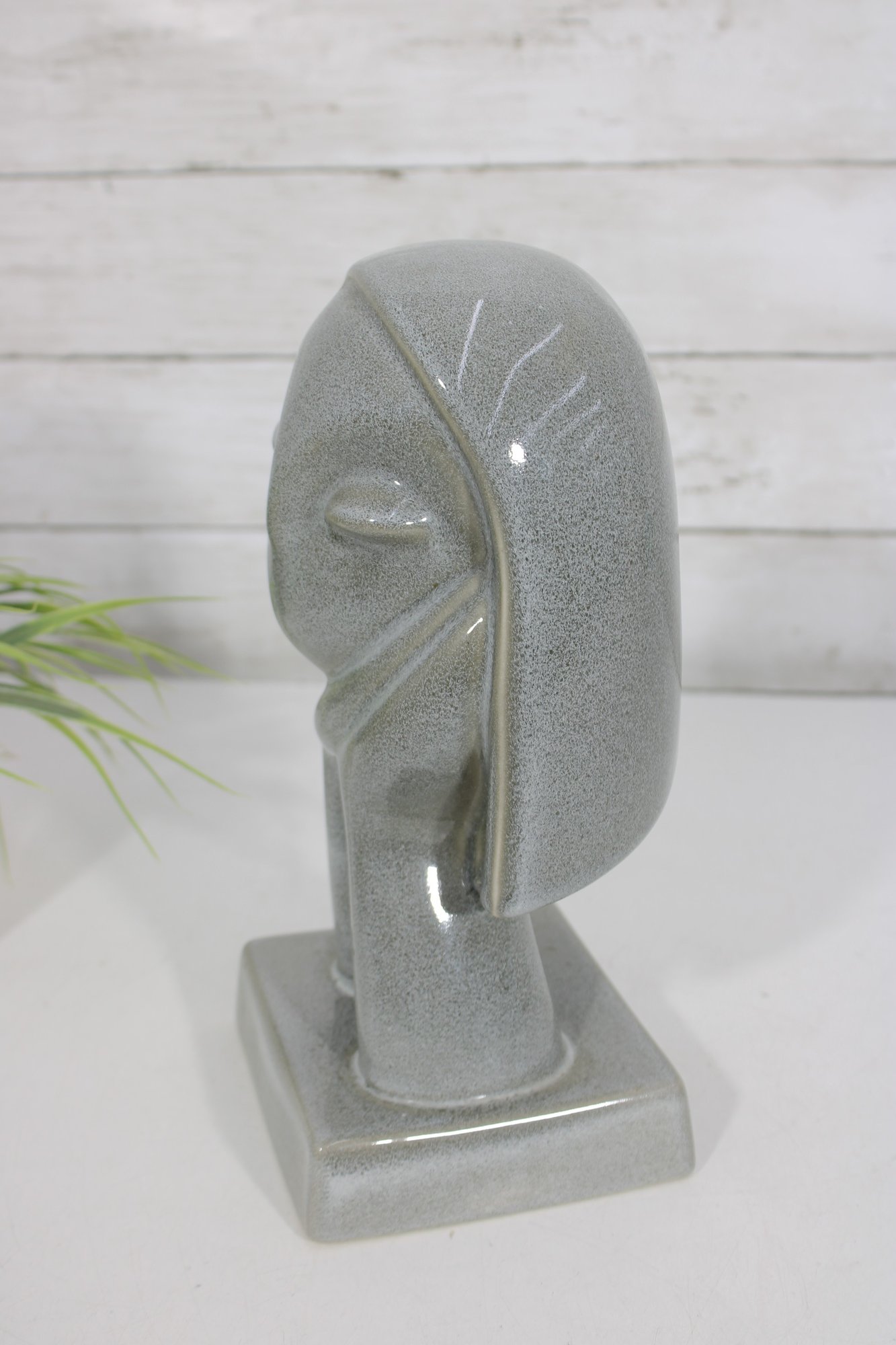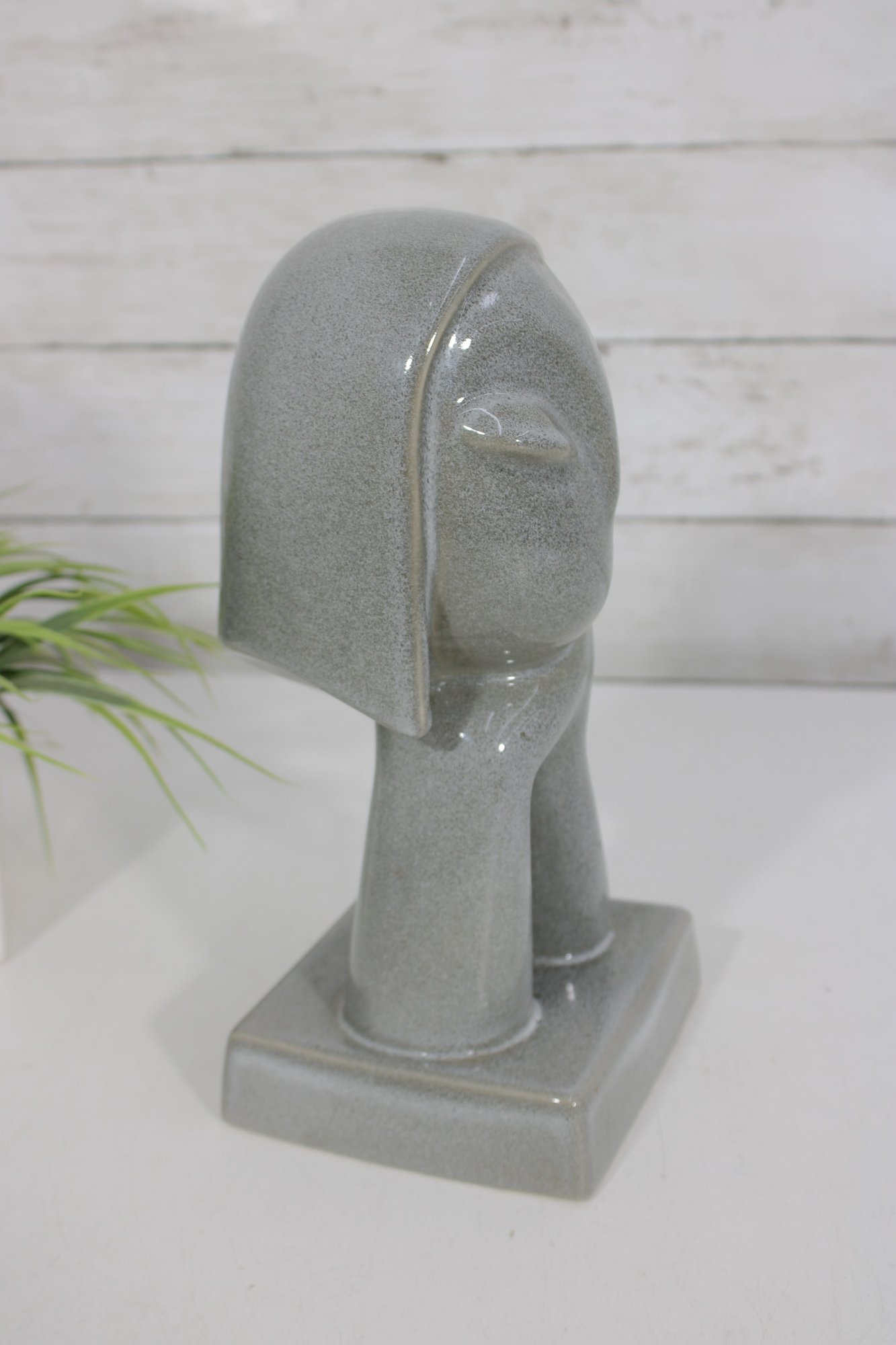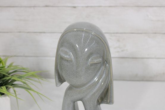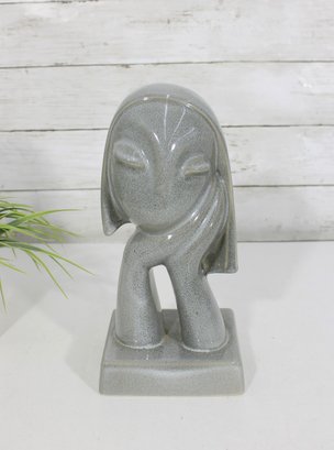 Striking and rare Howard Pierce “Sandra” ceramic figurine bust, a beautiful example of mid-century modern California pottery. This sculptural piece features a stylized female form with elongated lines and a minimalist, almost abstract facial design, embodying the signature aesthetic of Howard Pierce.