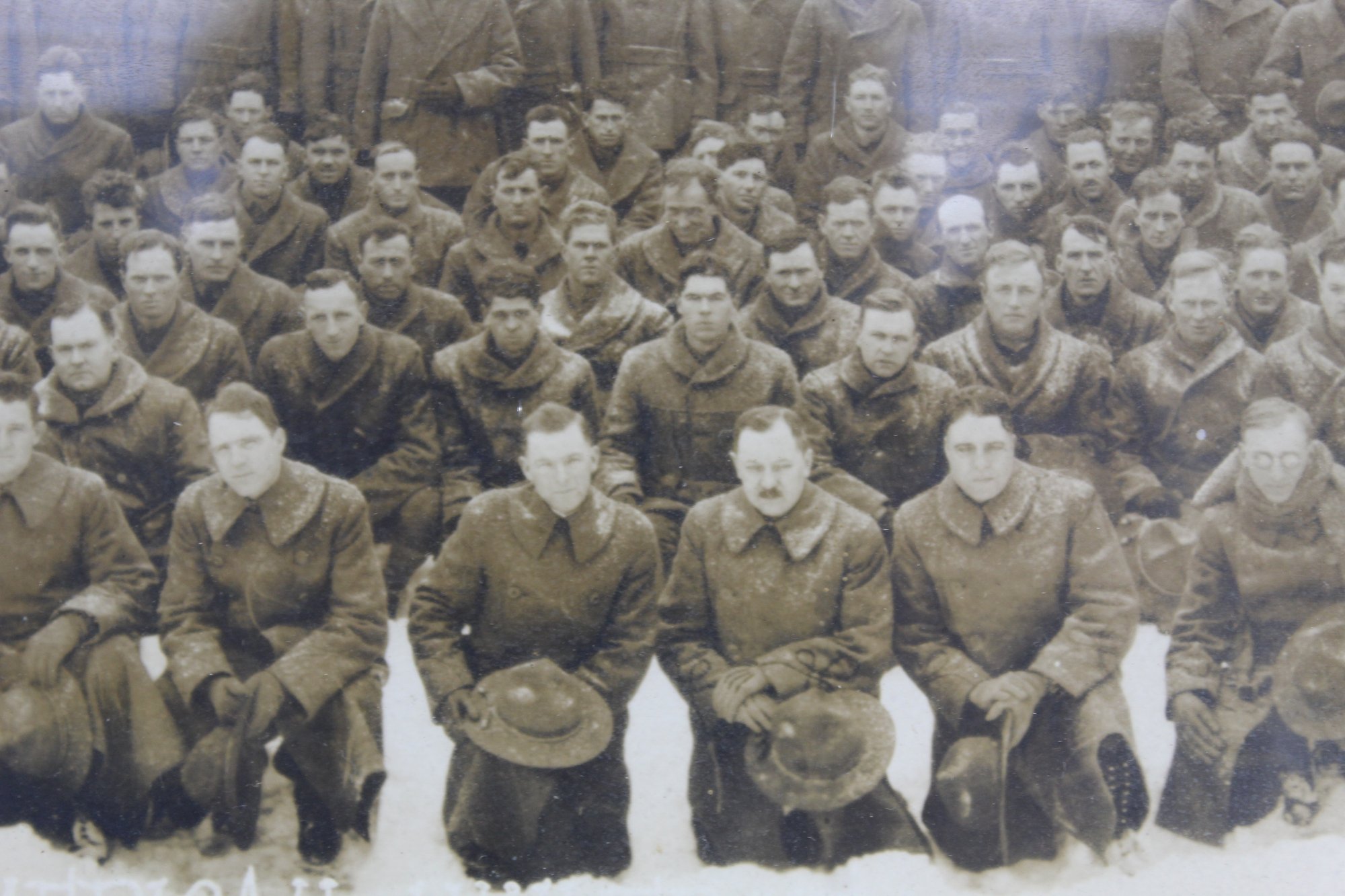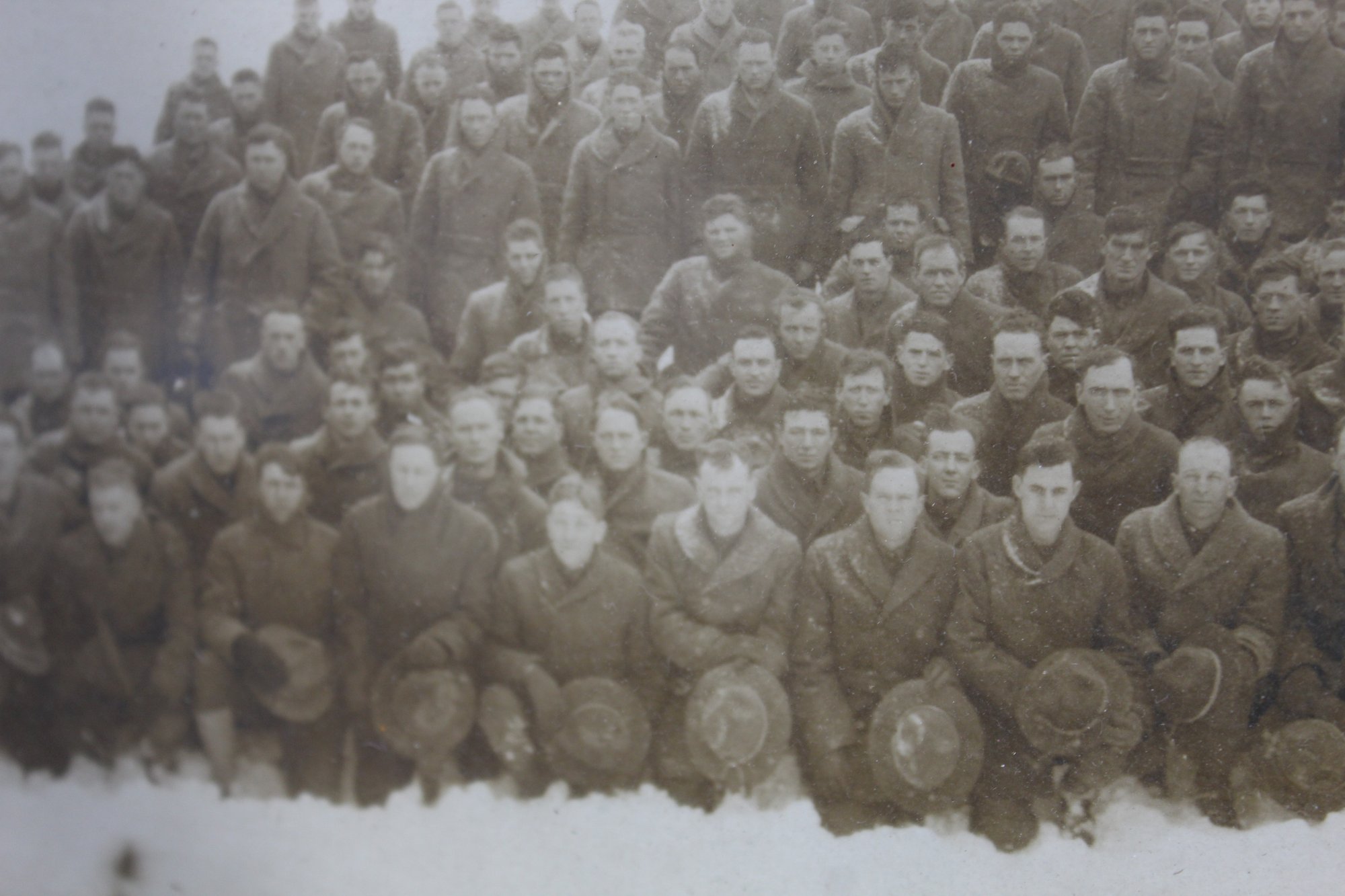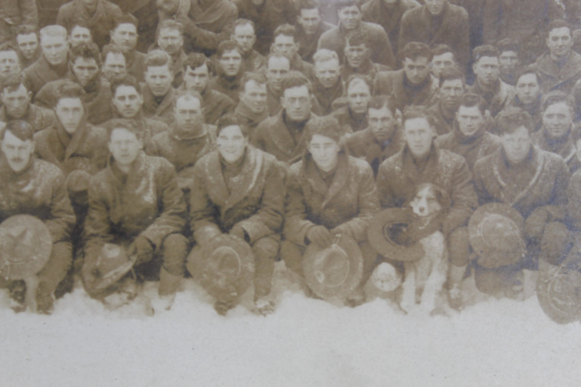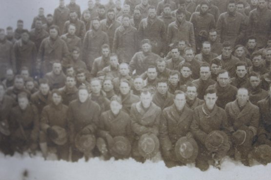 A rare and historically significant panoramic photograph of the 4th Battalion Engineers taken at Camp American University in Washington, D.C., during January 1918. This beautifully preserved photo showcases the battalion in a snowy outdoor setting, capturing a moment of camaraderie and military readiness during World War I.