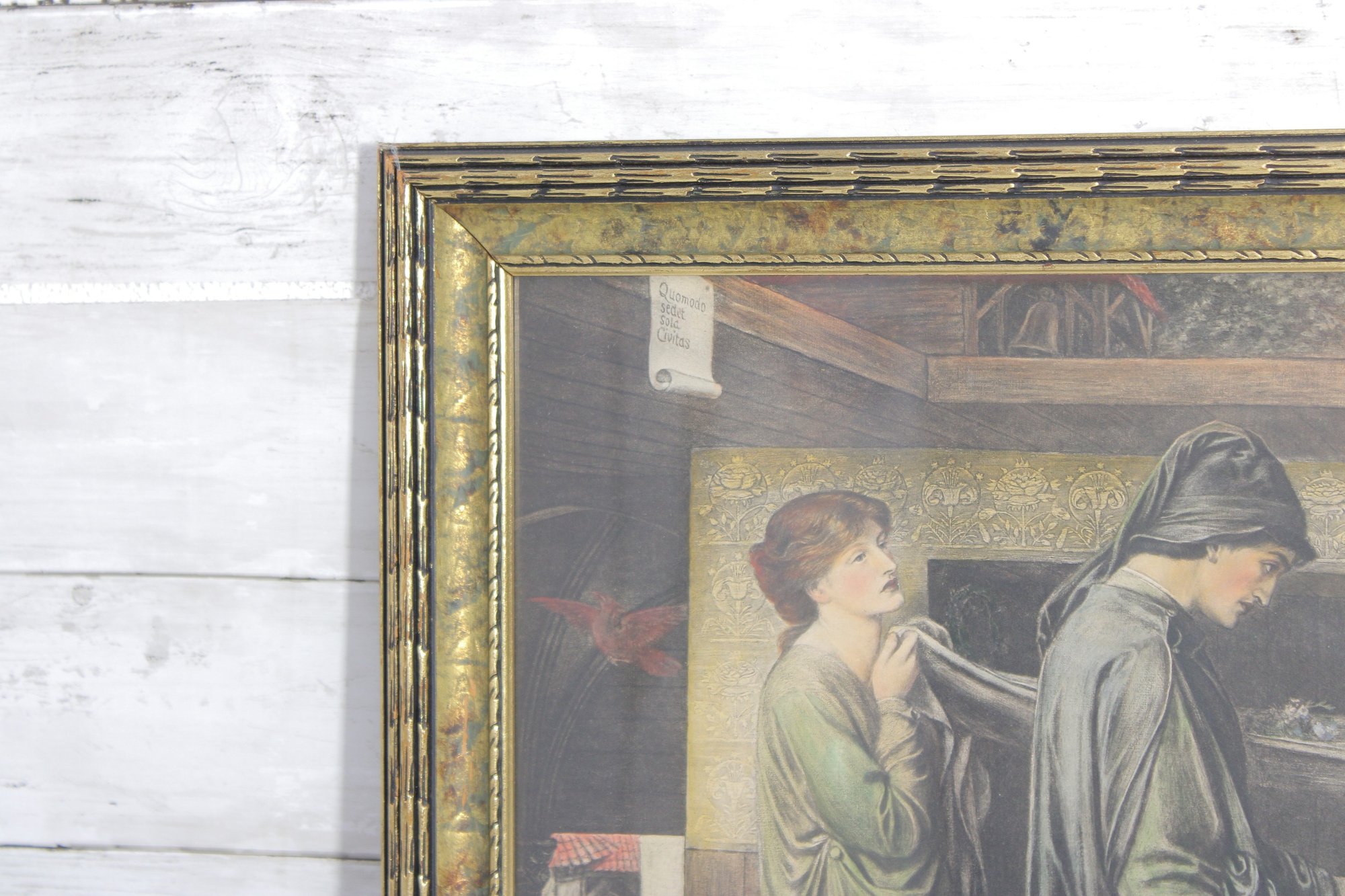 Housed in a vintage-style gold-tone frame, the piece has a timeless, gallery-inspired presence suitable for traditional interiors or collectors of classical and romantic artwork.
