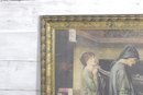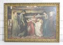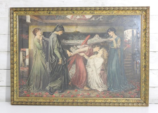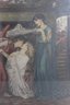 Beautiful framed print depicting a dramatic classical figural scene in the Pre-Raphaelite style. The composition shows a group of elegantly robed women gathered around a reclining figure, rendered with rich detail, flowing garments, and a moody, romantic atmosphere.