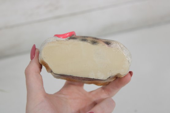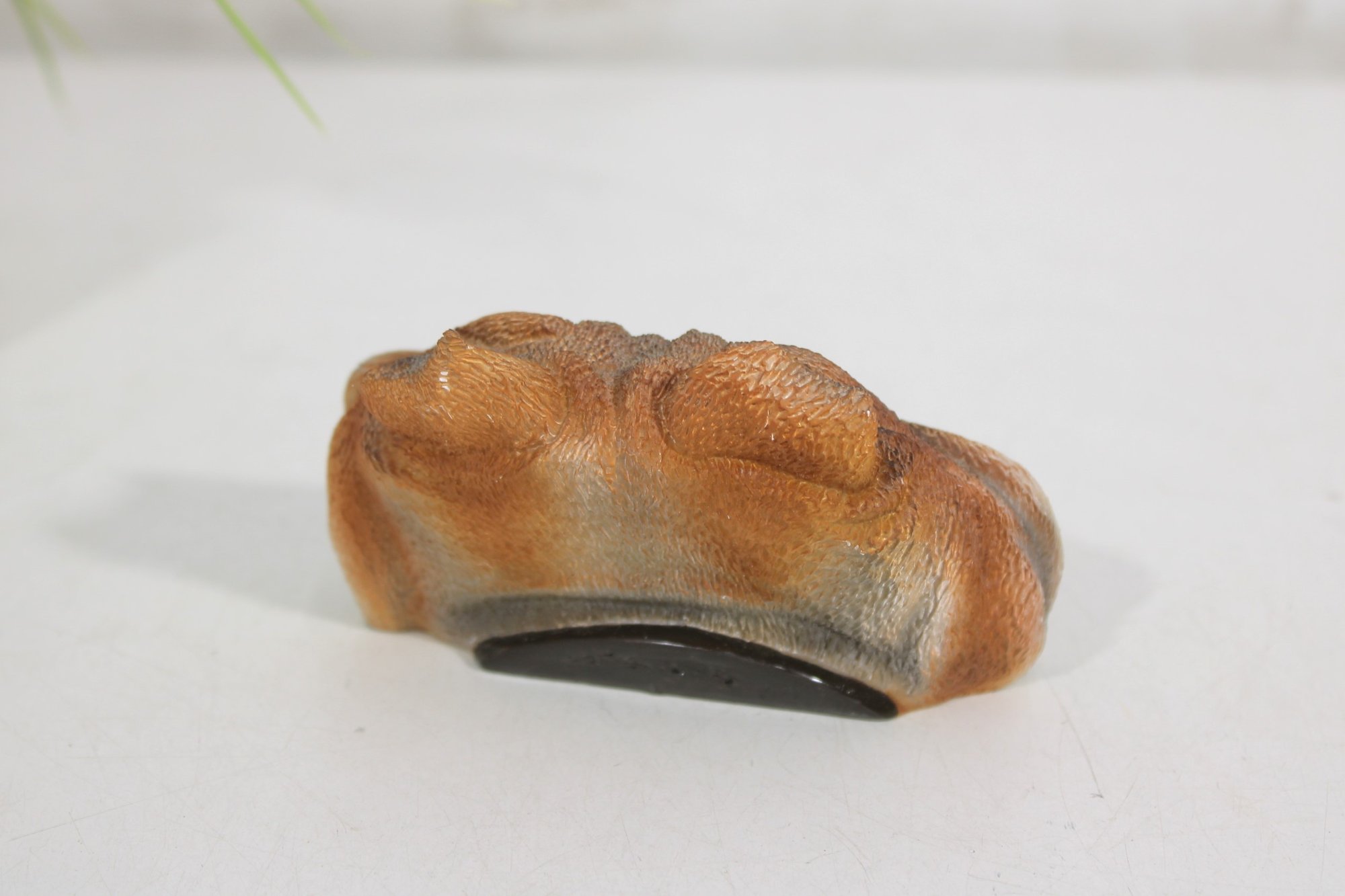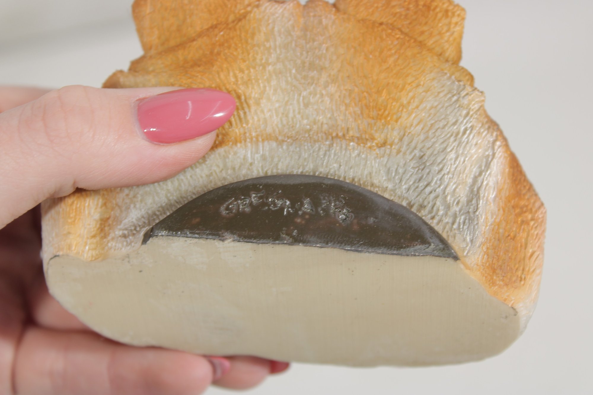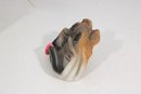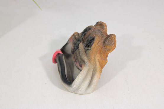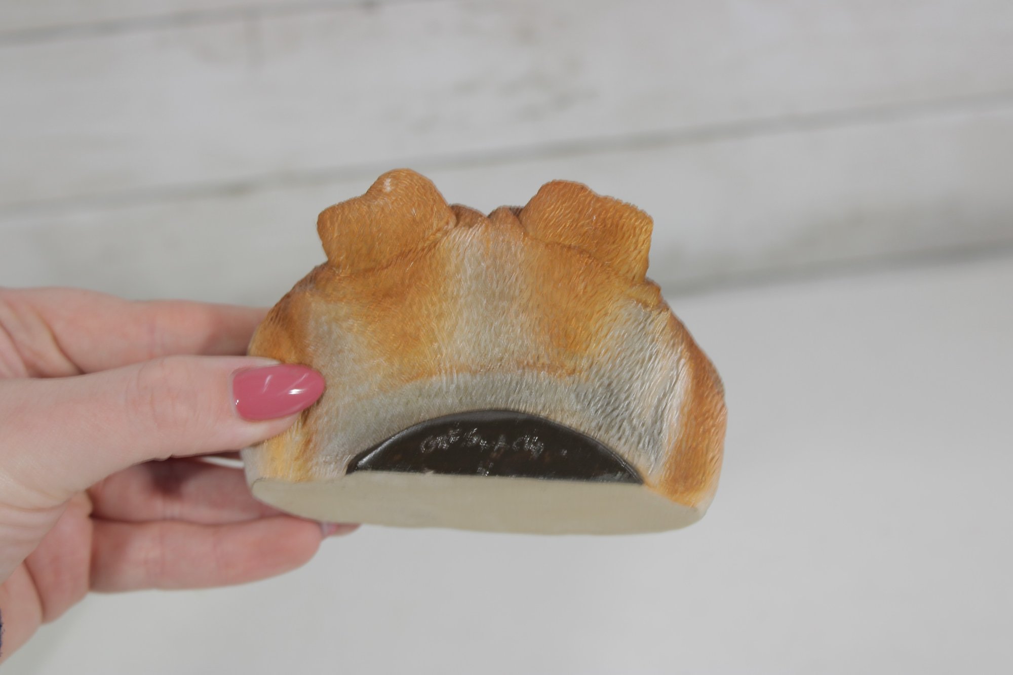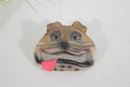 a vintage Greg Mack bulldog face business card holder and ashtray, a fun and collectible desk accessory featuring a whimsical bulldog design. The piece measures approximately 2.5 inches high and 4 inches wide.