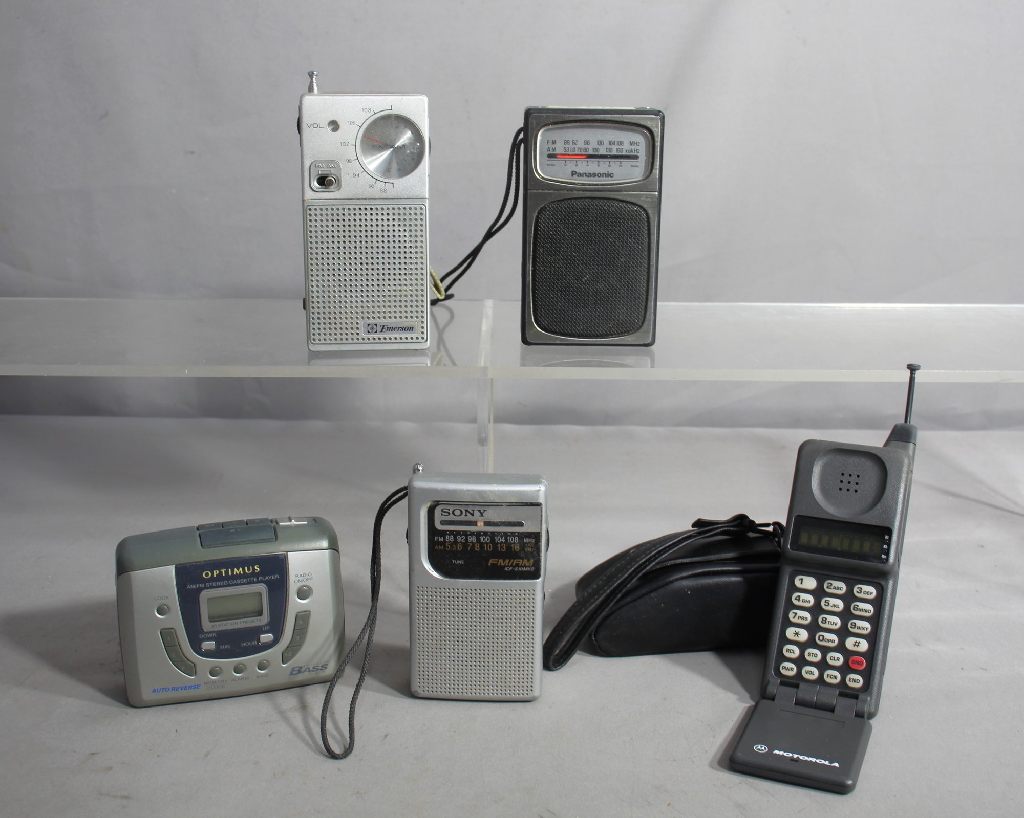 This lot features a fascinating array of portable radios from respected brands like Emerson, Panasonic, and Sony, each with a design that captures the essence of its era. From the straightforward dials of the Emerson to the sleek silver Sony, these pieces reflect the ingenuity of portable audio technology throughout the decades. Accompanying these audio gems is a nostalgic Motorola flip phone, a true symbol of the mobile revolution of the 1990s.