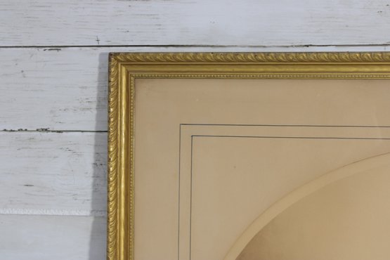 Beautifully framed with matting and a gold-tone frame, this piece is ready to display and adds a sophisticated touch to any vintage, traditional, or Art Deco-inspired interior.