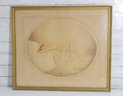 Rendered in subtle sepia and warm neutral tones, the artwork captures a serene, romantic mood with graceful lines and soft shading. The oval presentation and minimalist palette reflect classic Art Deco and early 20th-century decorative styles, reminiscent of the works of Louis Icart.