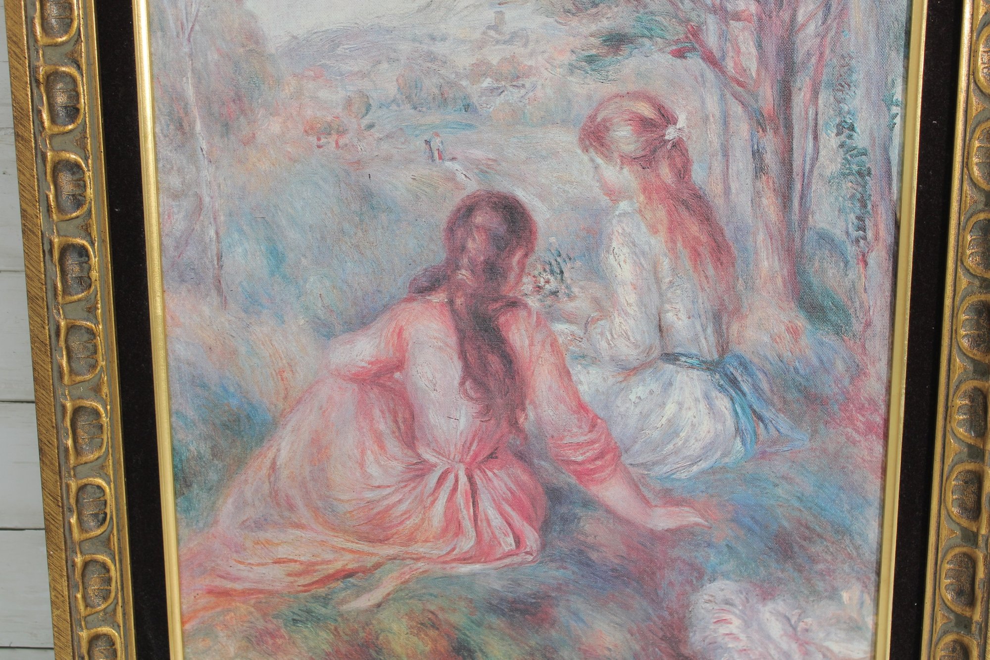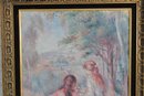 Soft, dreamy, and romantic, this beautiful canvas print captures a serene pastoral scene of two figures seated in a gentle landscape. Rendered in delicate pastel hues of blush, blue, and lavender, the composition has a classic impressionist feel, evoking a sense of quiet conversation and timeless elegance. The painterly style and flowing forms create a calming, ethereal atmosphere.