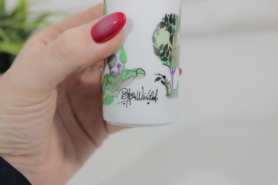 The flared form and vibrant illustration reflect Wiinblad’s signature artistic style, blending fantasy and folk-inspired elements. A delightful collectible piece, perfect for display, small floral arrangements, or as part of a Rosenthal or mid-century modern collection.