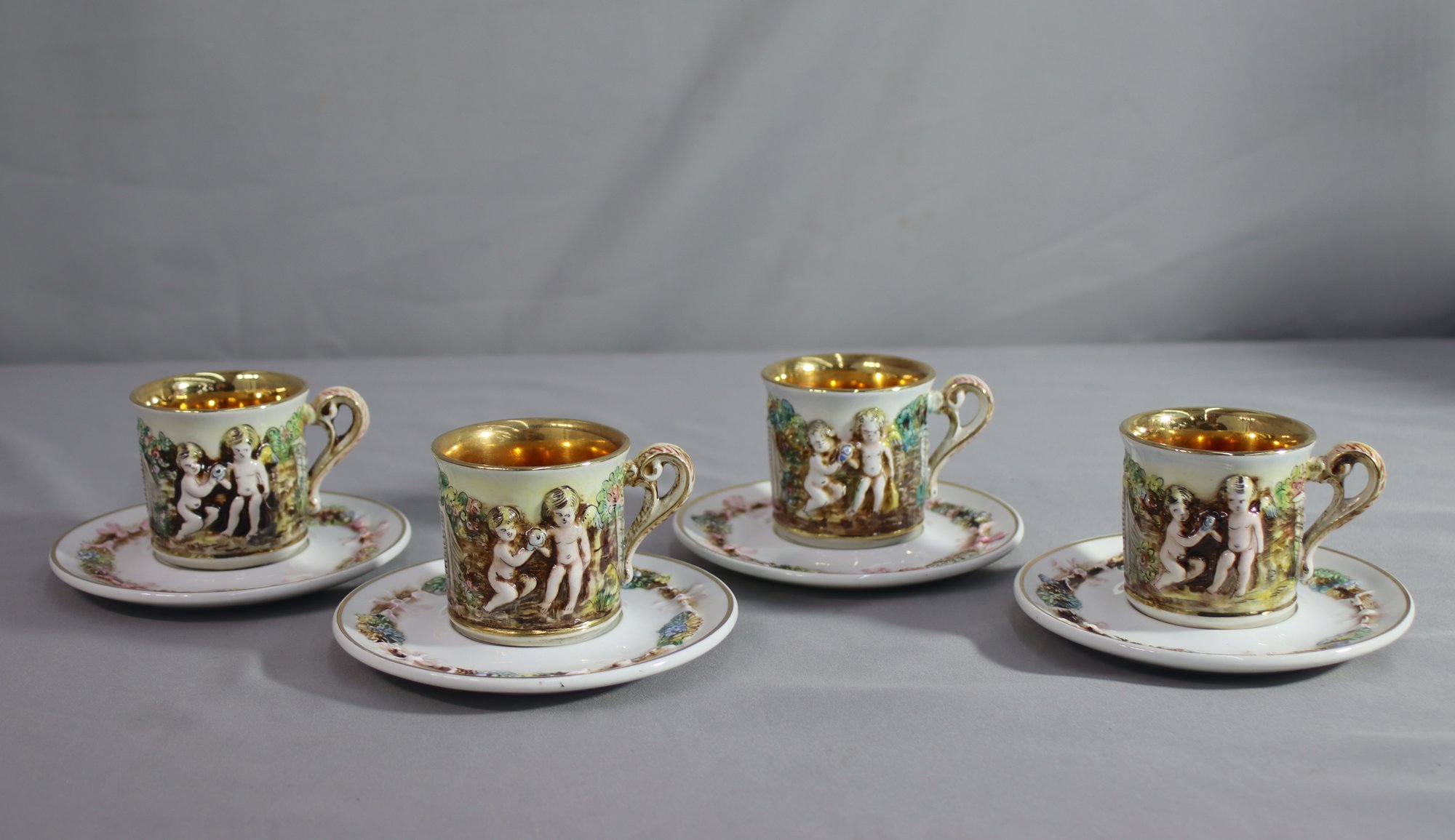 Group Lot Of 4 Vintage Singed Capodimonte Giled Demitasse Cup & Saucer Set