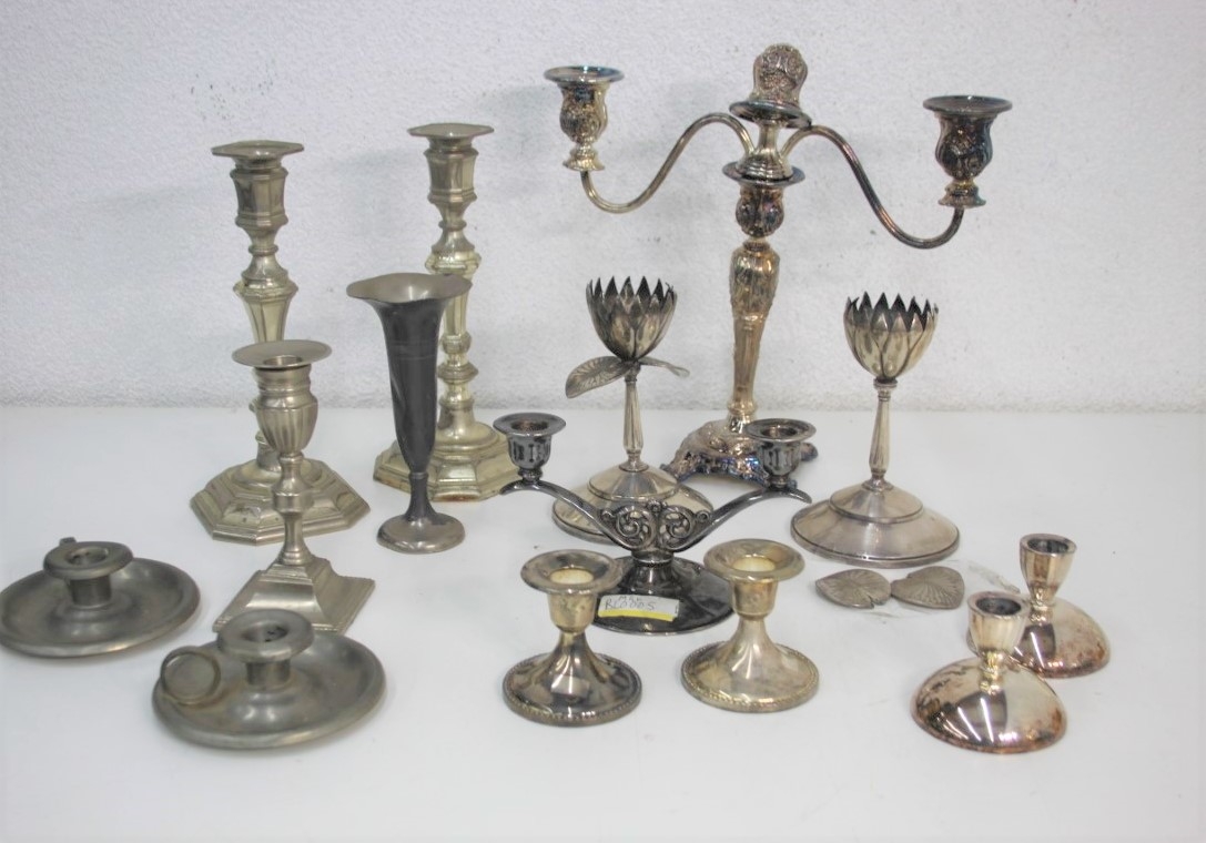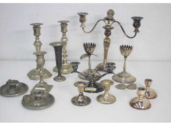 Group Lot Of Candlestick Holders, Metalware And Silverplate