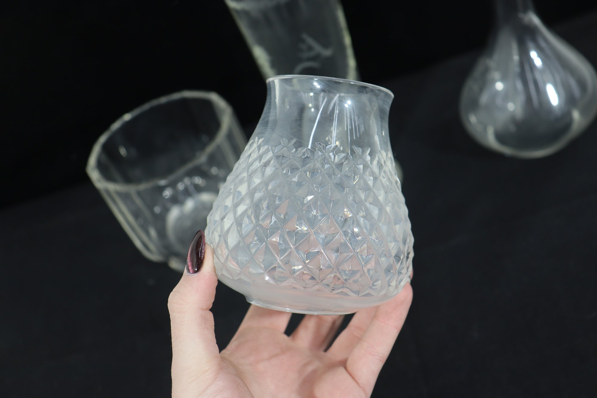 This varied assortment offers excellent display appeal and is ideal for collectors, decorators, or resellers looking for a diverse selection of vintage-style glassware.