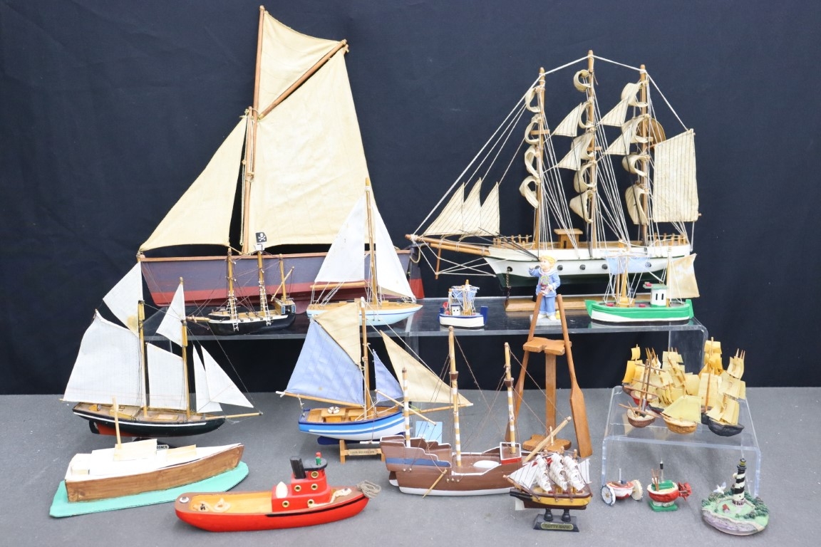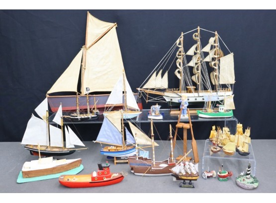 Group Lot Of Large Ship And Small Boat Models And Nautical Figurines