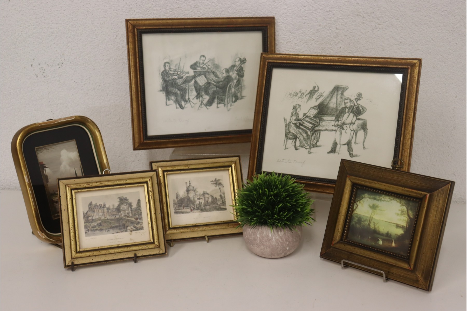 Group Lot Of Six Framed Small Art Prints - Inc. 2 E. Klein APs, 2 Vintage Lithos Charpentier/F. Benoist