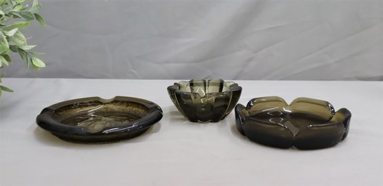 Group Lot Of Three Smokey Grey/green Ashtrays-vintage