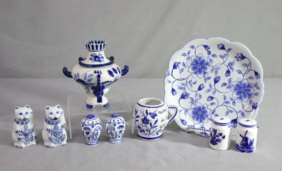 Group Lot Of Varied Blue & White Salt & Pepper Sets And More