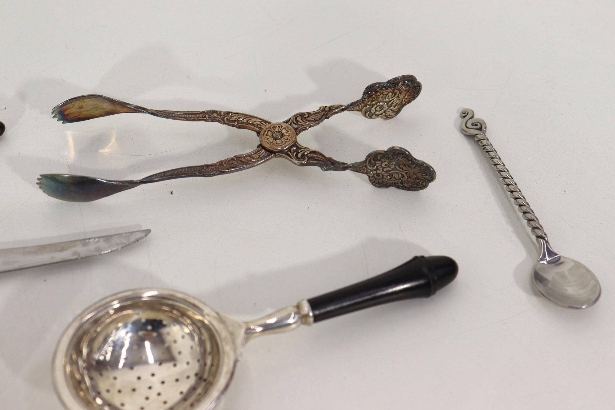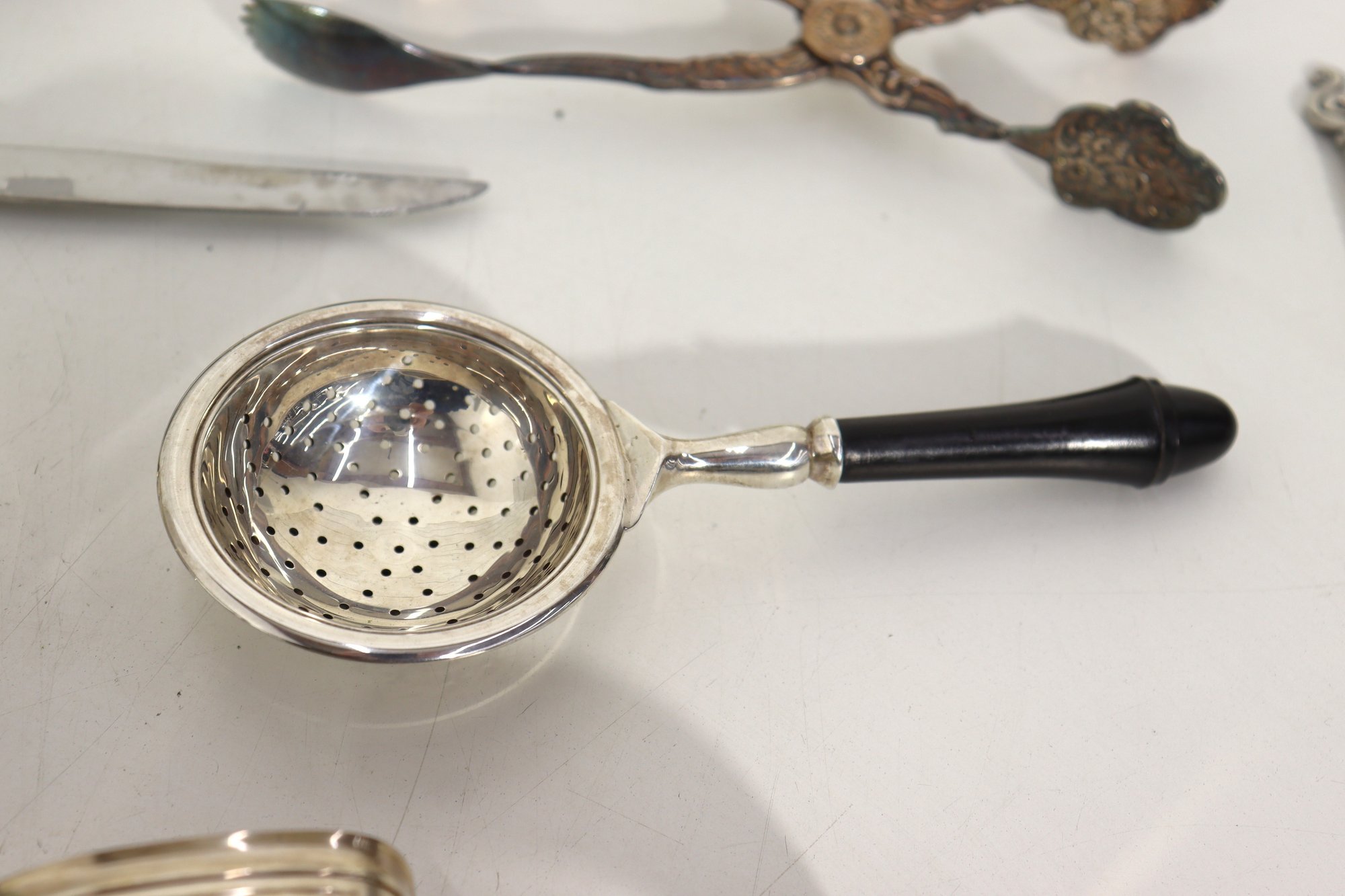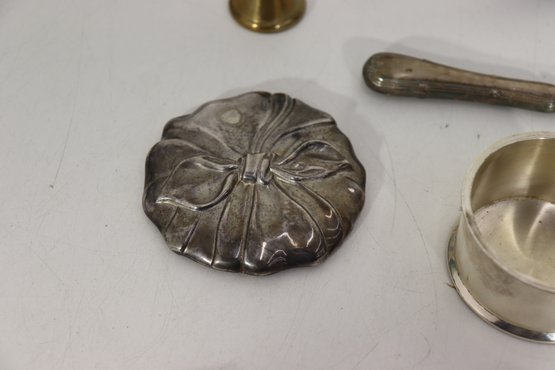 Group Lot Of Vintage Silverplate Tableware & Utensils Napkin Rings, Tongs, Tea Strainer & More