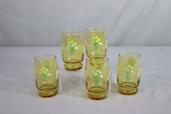 Group Of 5 Anchor Hocking Yellow Juice Glasses