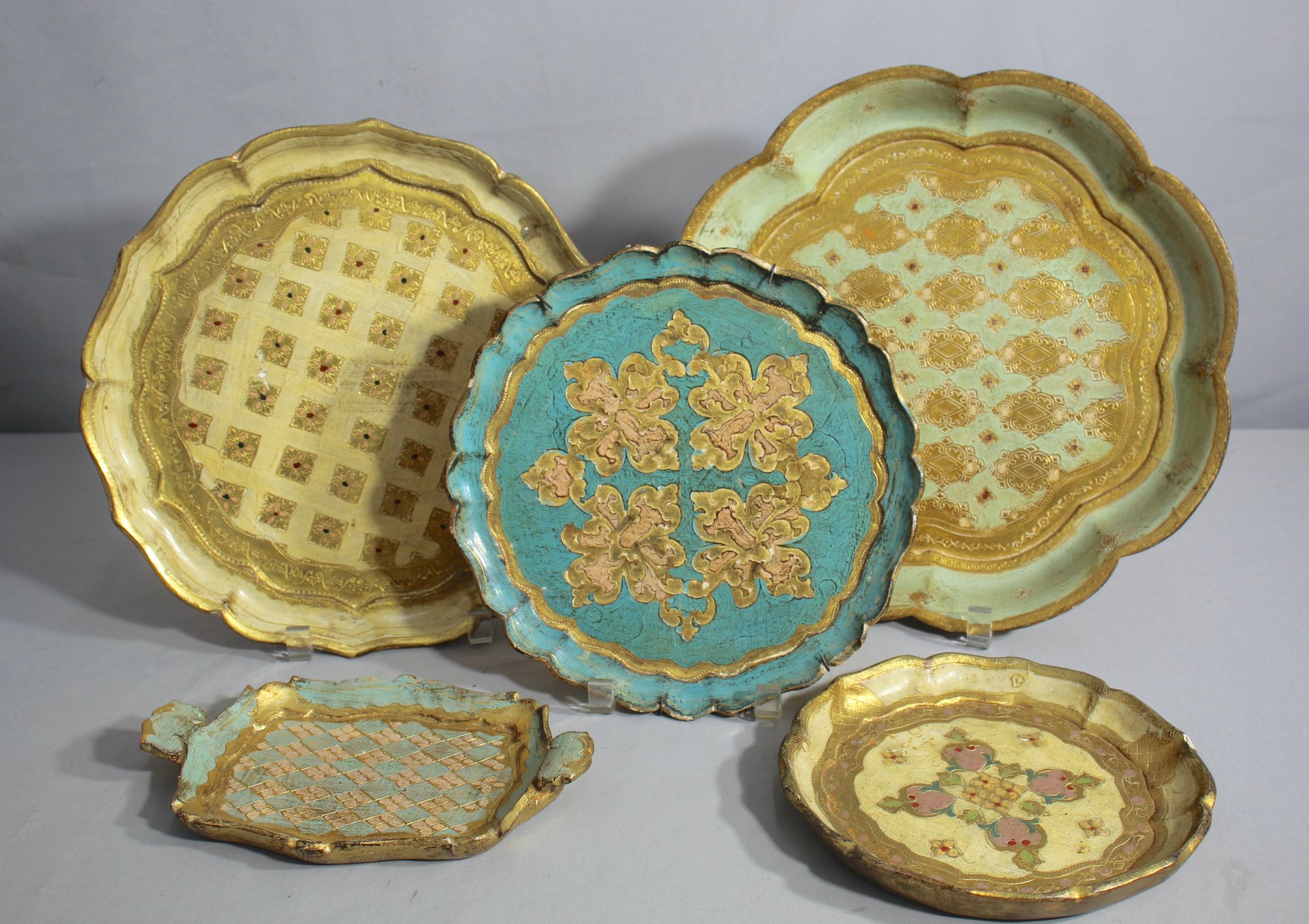 Group Of Five (5) Vintage Italian Florentine Trays-small